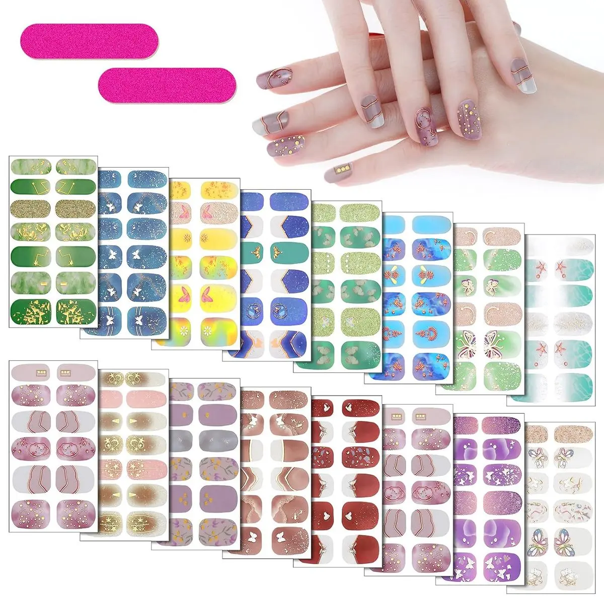 16 sheets full wrap gradient nail polish stickers provide sufficient quantity and various styles to satisfy your nail decoration needs