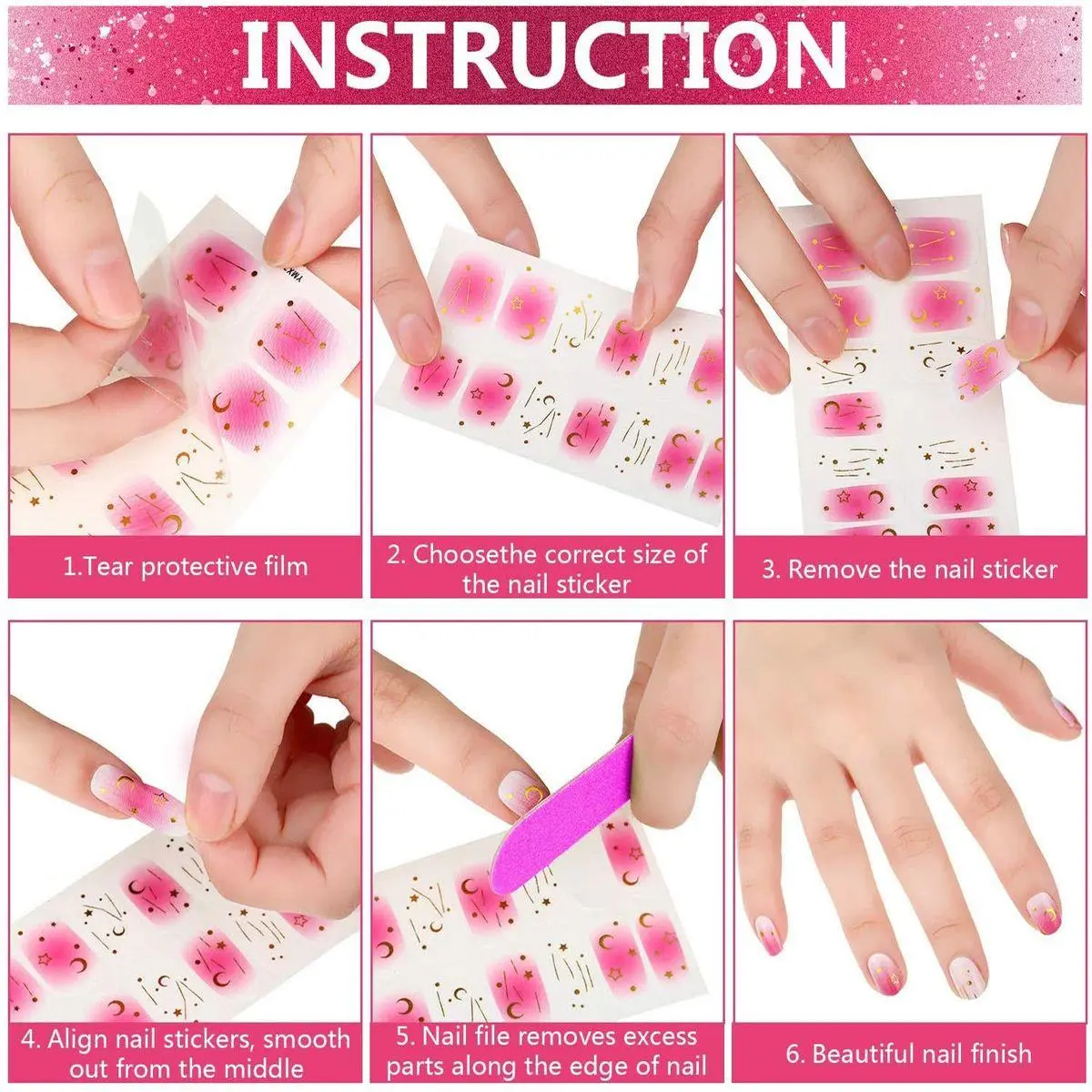 Self-adhesive nail decals easily stick on nails for an attractive manicure, suitable for salon, home, beginners