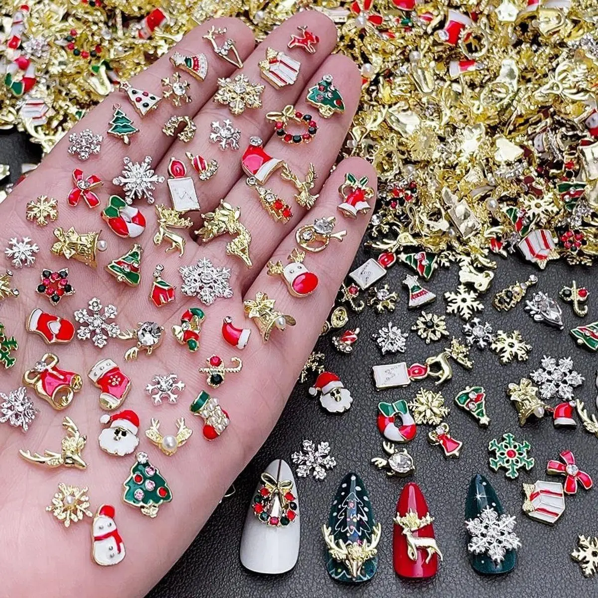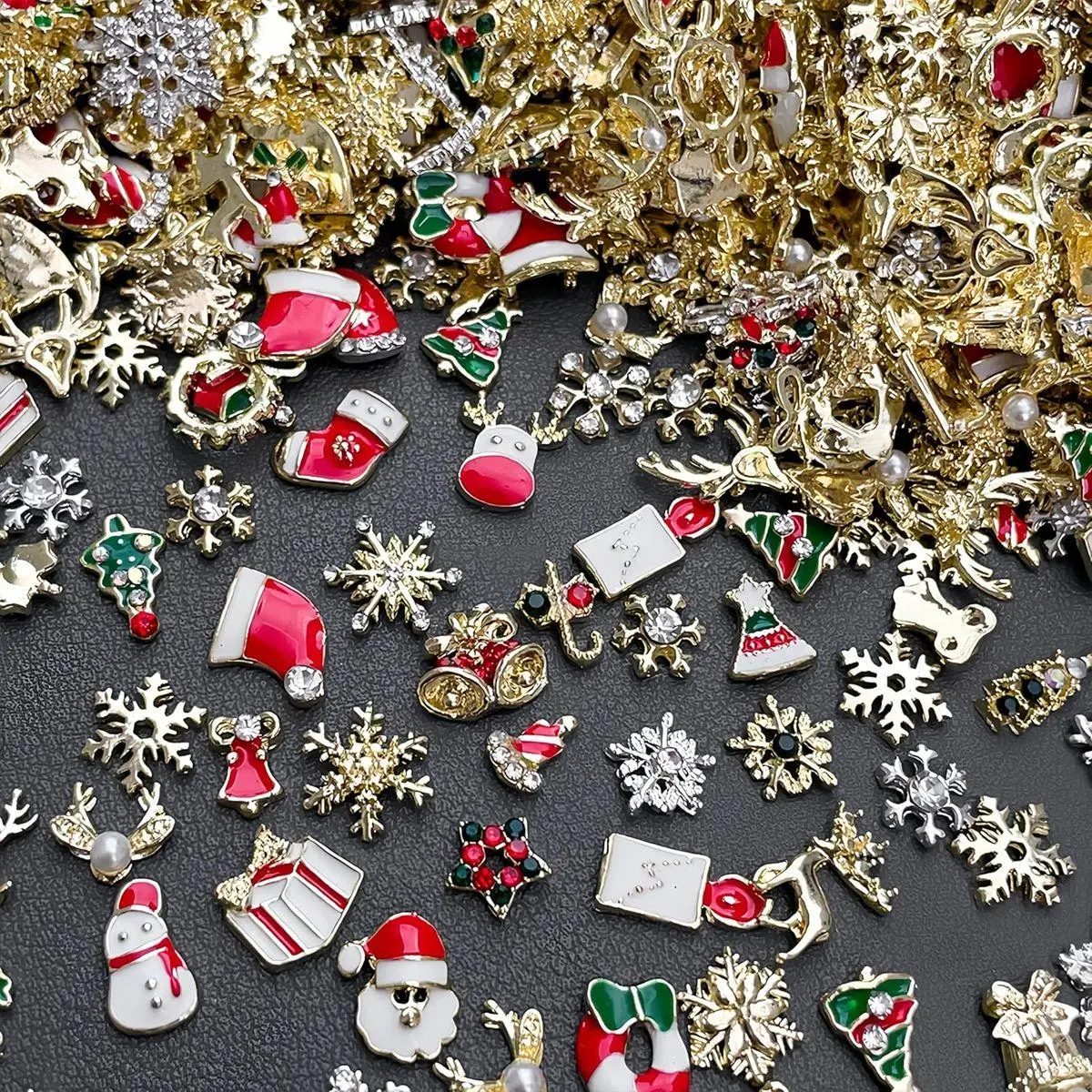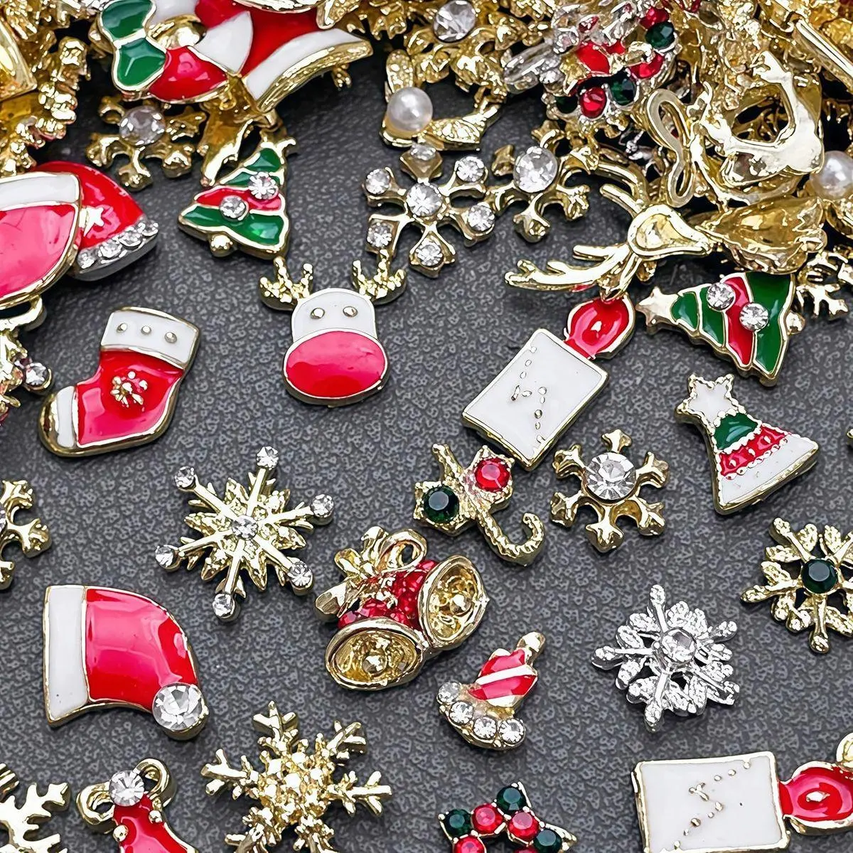 Package Contain:You will get 30pcs alloy Christmas snowflake nail charms snowman elk nail rhinestones and xmas tree Santa Claus nail charms, various shapes can meet your different needs every day, you can do all kinds of bold and stylish nail designs