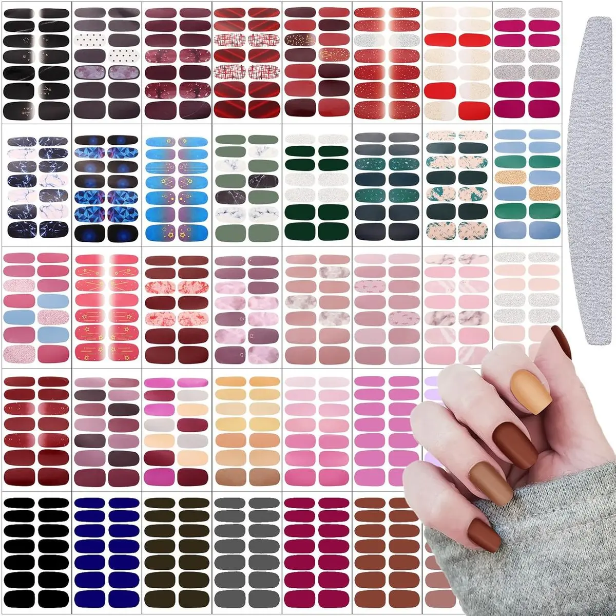 Abundant quantity: you will receive 1 piece of nail file and 40 sheets of nail polish stickers in different styles and sizes, each sheet accounts for 14 pieces nail polish stickers, so there are totally 560 pieces nail polish stickers, enough quantity for you to apply for a long time and enough sizes to fit any sized nails