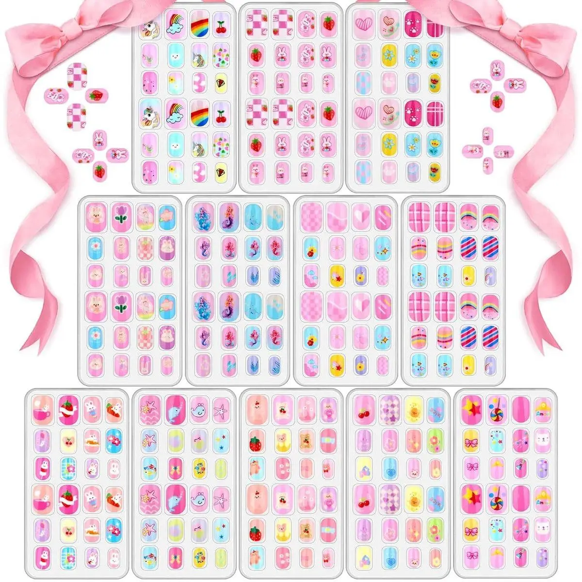Cute Press ons for Gir Nails - Our girls glue on nails are designed with 12 different adorable patterns and bright colors. Easy for kids to DIY various nail art styles every day to meet their different dress needs