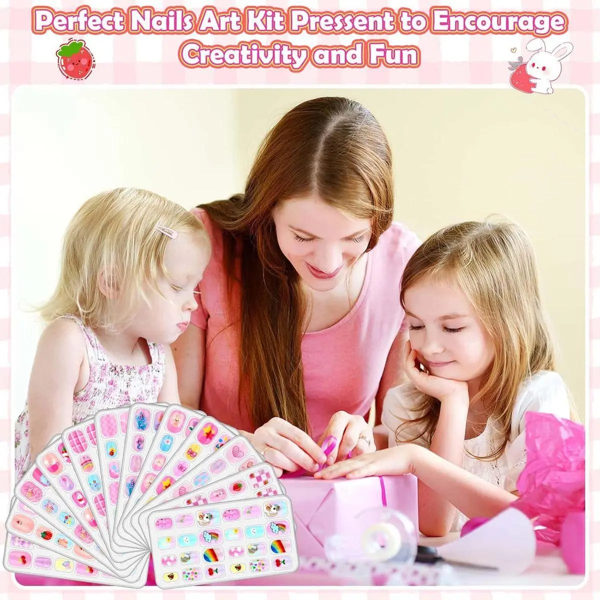 Premium Material - Our children's fake fingernails are made of reliable ABS plastic and gentle nail glue pads and designed for little fashion lovers, the pattern can last for its vibrant color for a long time. Giving your girl a good nail salon experience at home