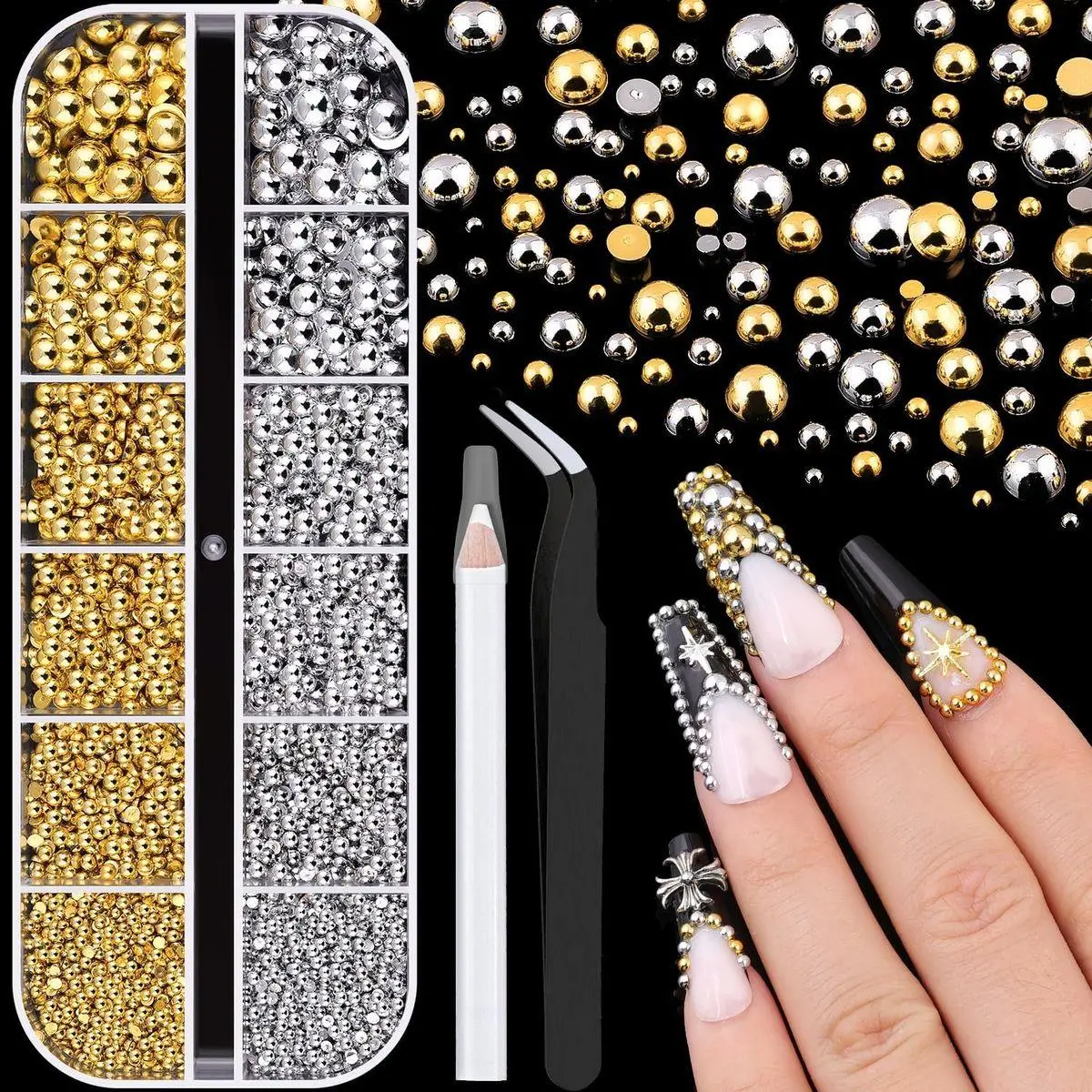 Color: 04 Nail Pearls(Gold+Silver) Set 3