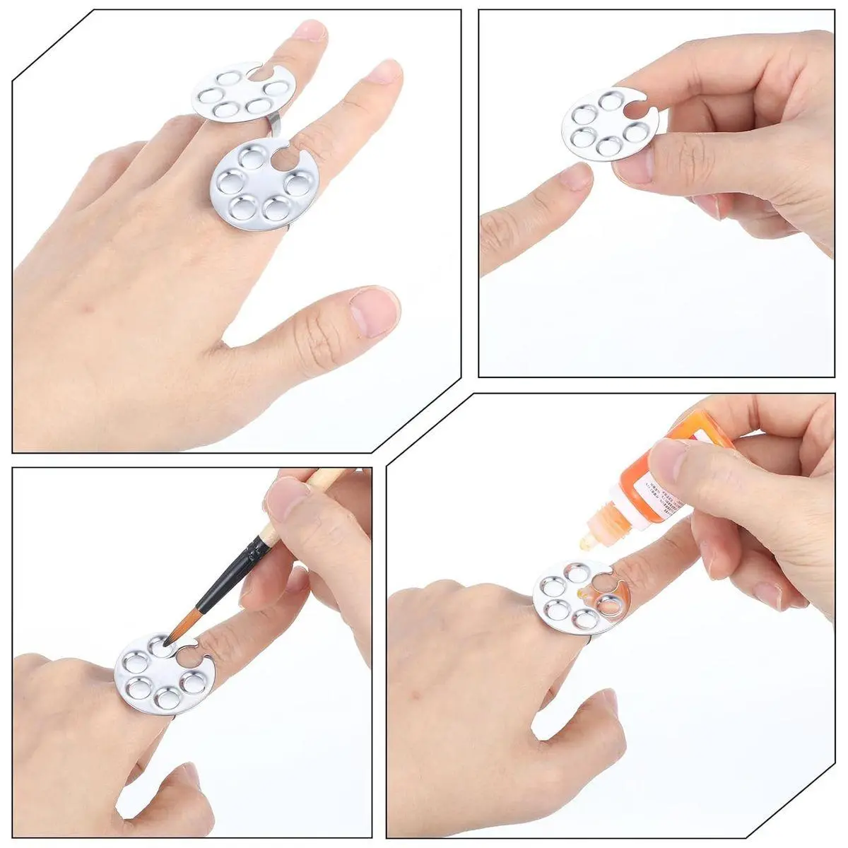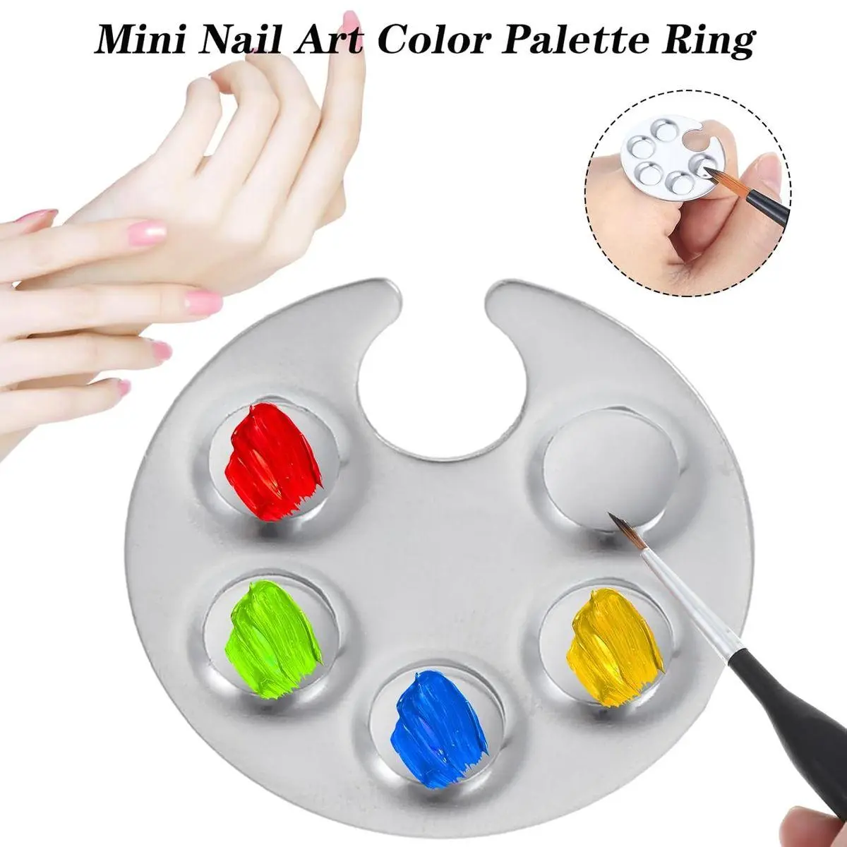 Sturdy Construction: Made from hard-wearing stainless steel, the nail art palette ring ensures longevity and reliability. These nail rings are built to withstand regular use, providing a heavy-duty nail polish tray for all your creative endeavors