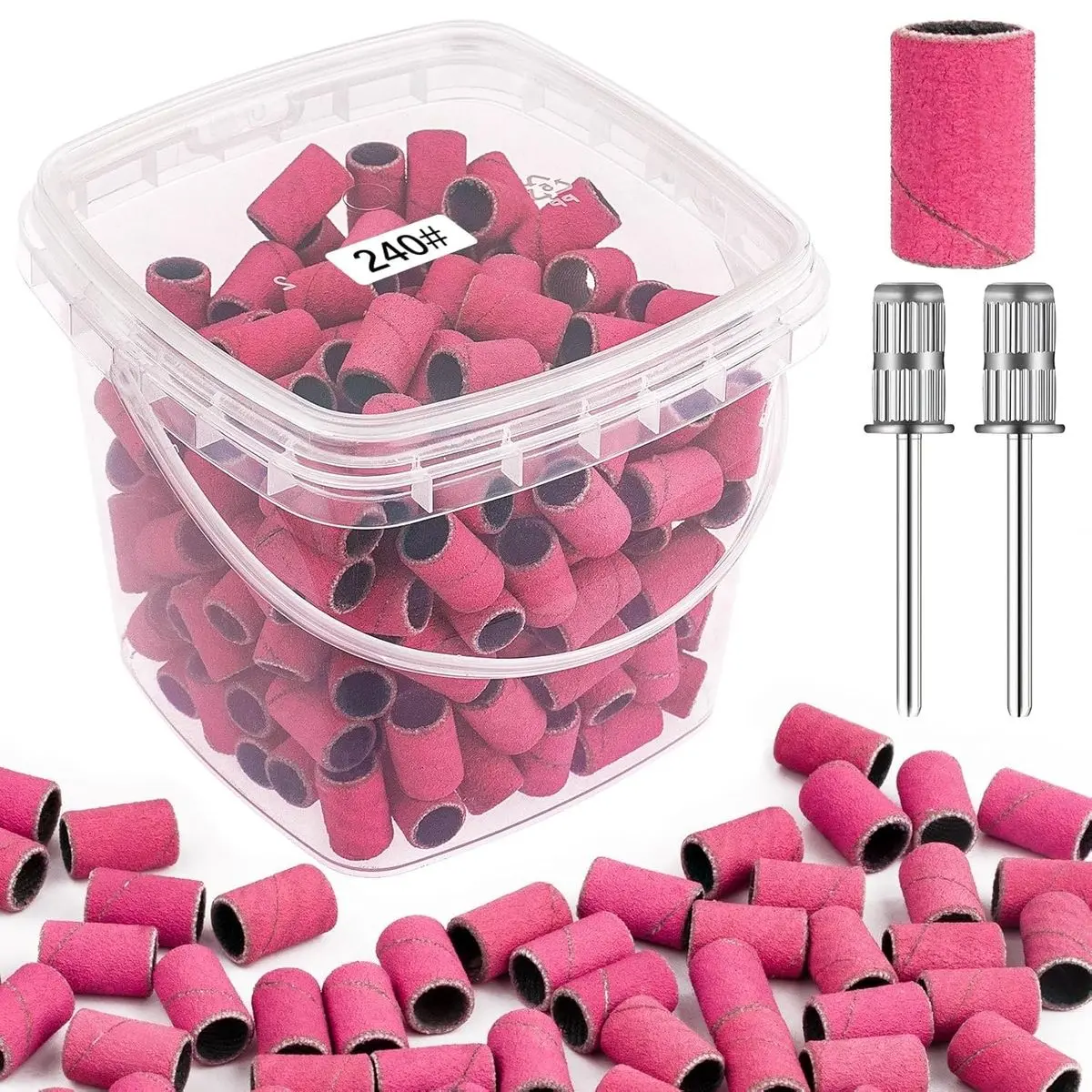 240 grit sanding bands: You will receive 200 pieces pink nail sanding bands, 2 pieces 3/32 inch silver replacement mandrel nail drill bits in 1 cute little bucket, 240 grit extreme fine sanding bands is perfect for nail polish and polishing tools, suitable for professional studio or home use, perfect for manicures and pedicures