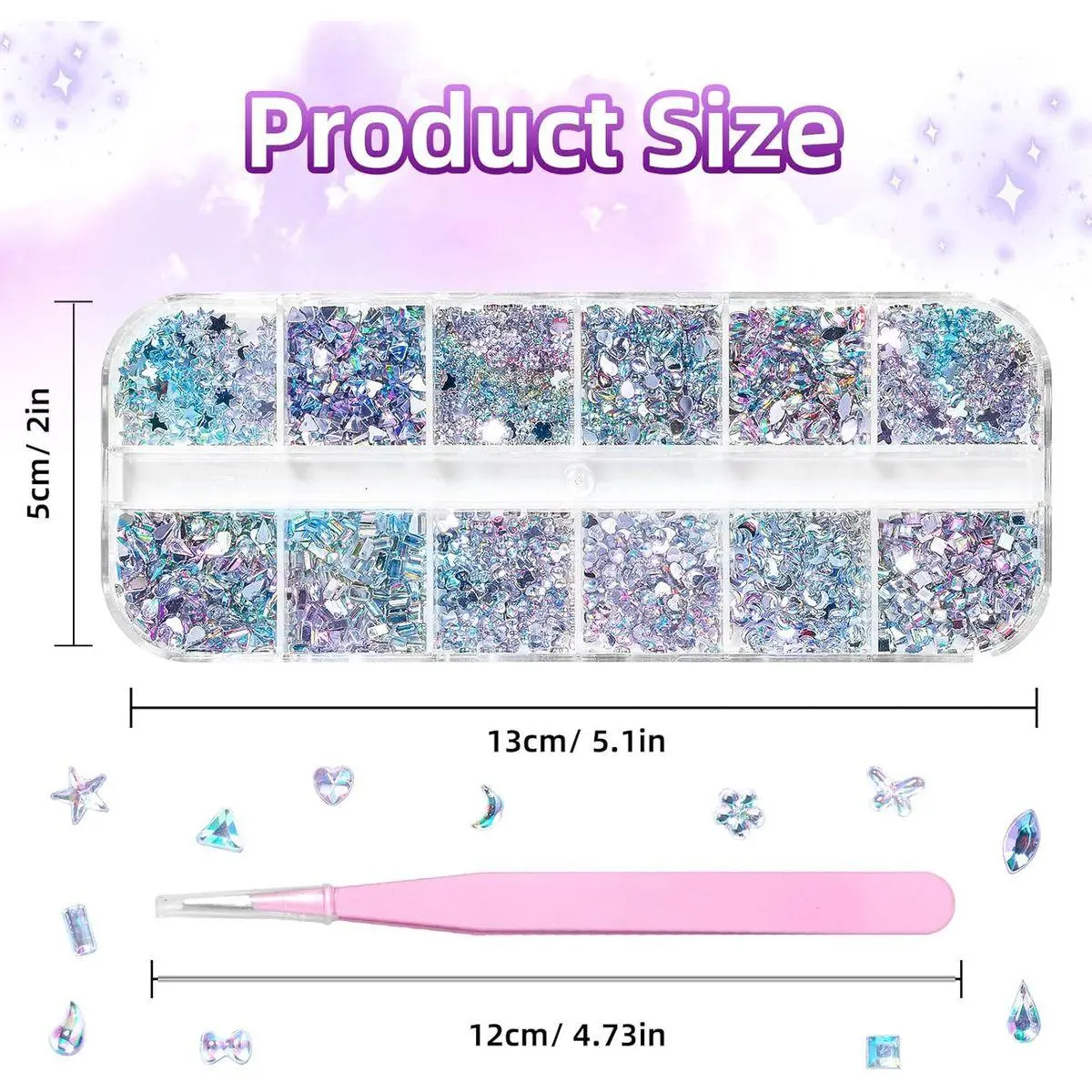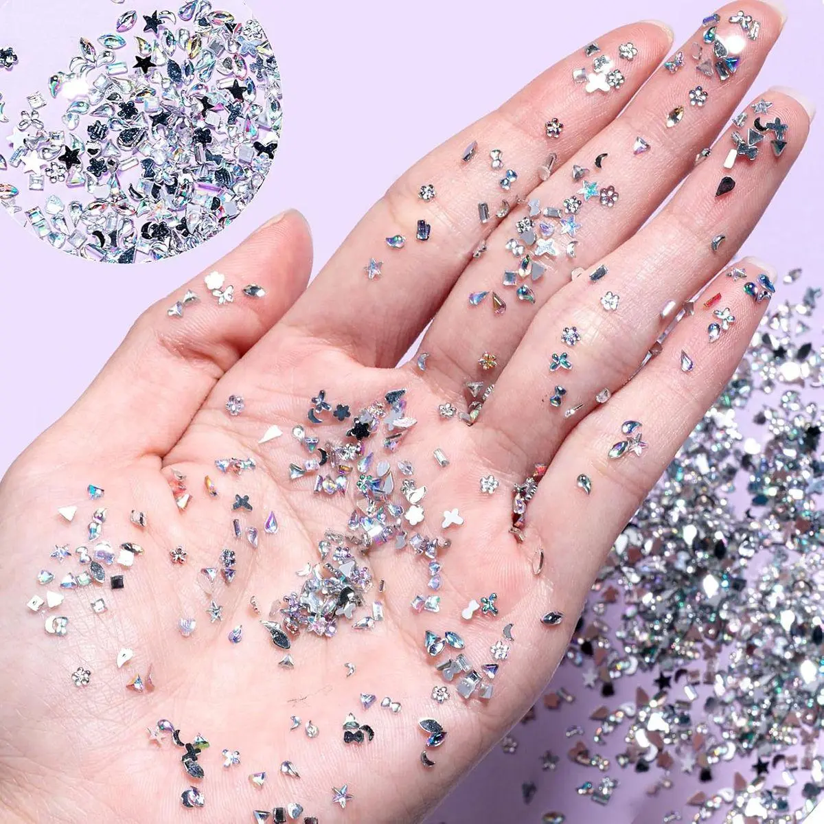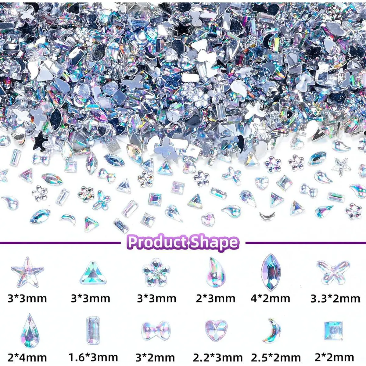 Package: You will receive multi-shapes flatback crystal nail art gems, like flowers, heart, star, moon and butterfly mini nail gems. With this enough amount of gems, you can DIY your own special nail art