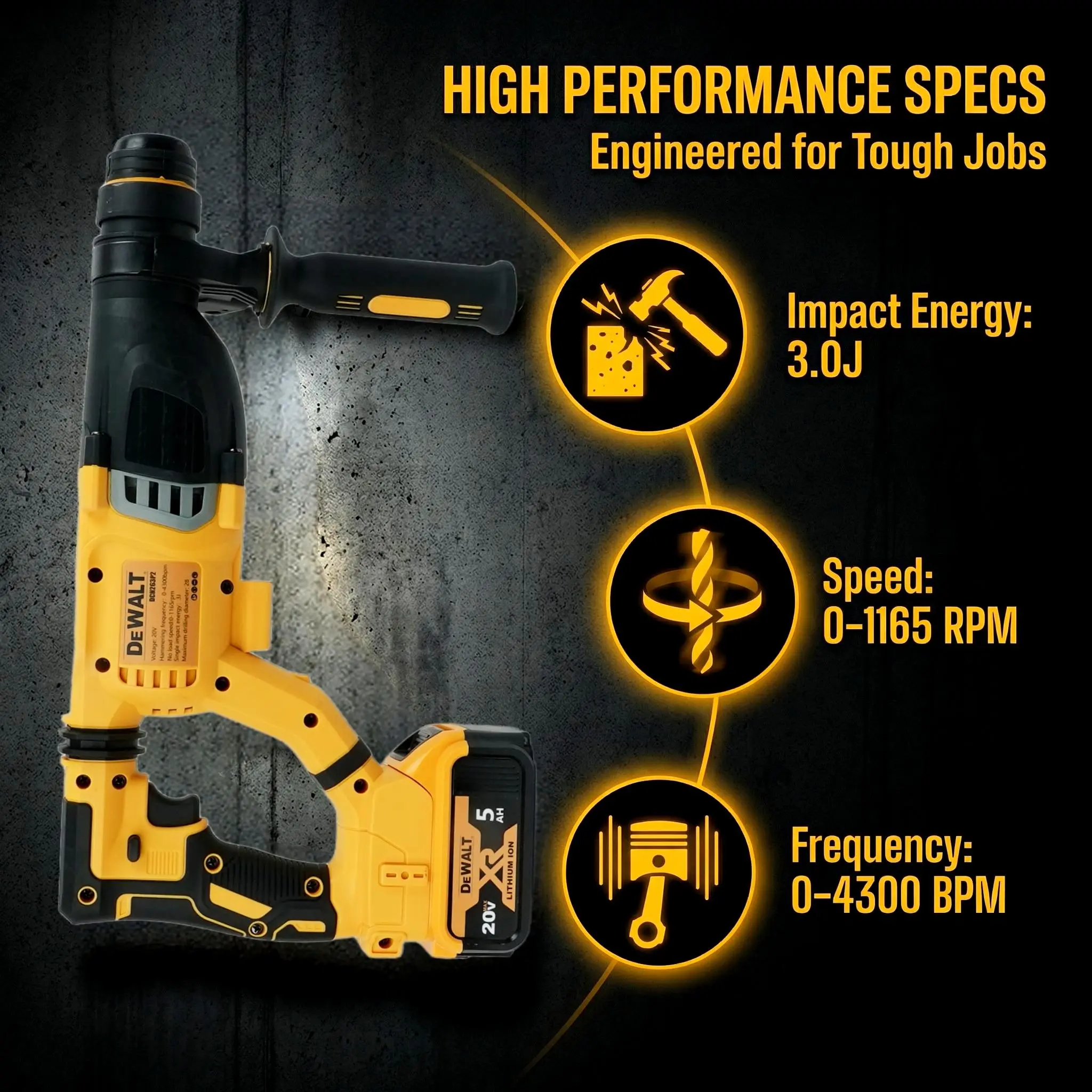 Dewalt DCH263 delivers superior performance with 3.0J impact, versatile drilling capacity.