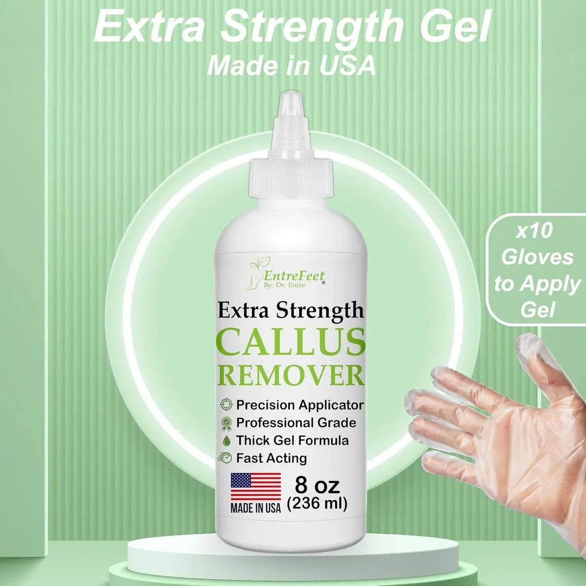 COMPLETE PREMIUM KIT: Dr. Entre's callus remover kit is truly the complete package. Large 8oz Callus remover gel, stainless steel foot file, double sided foot pumice, Free 10 pack of gloves(5 pairs), and Free foot care Ebook. Made in the USA.