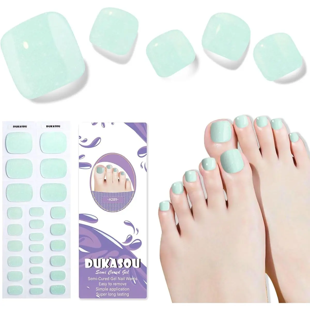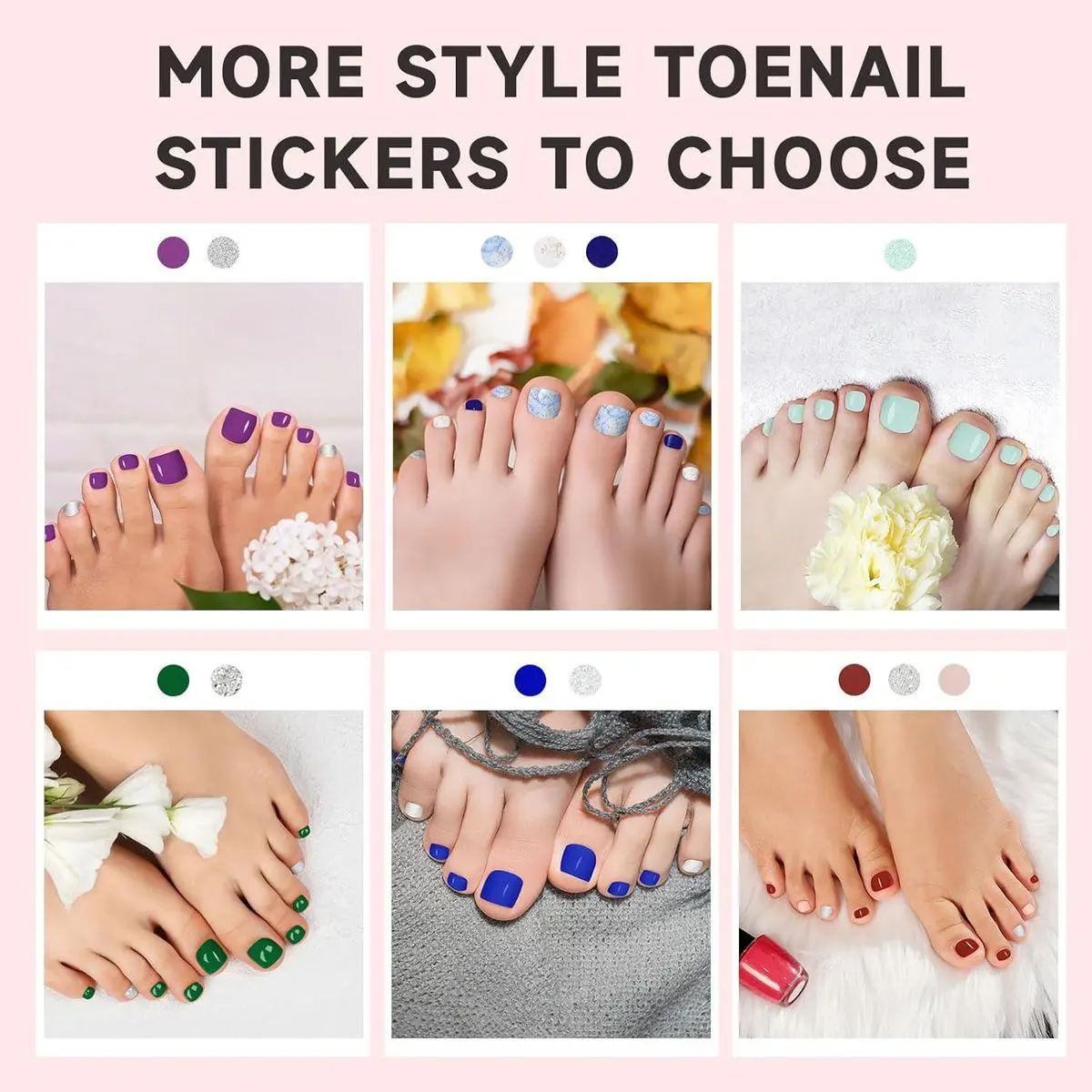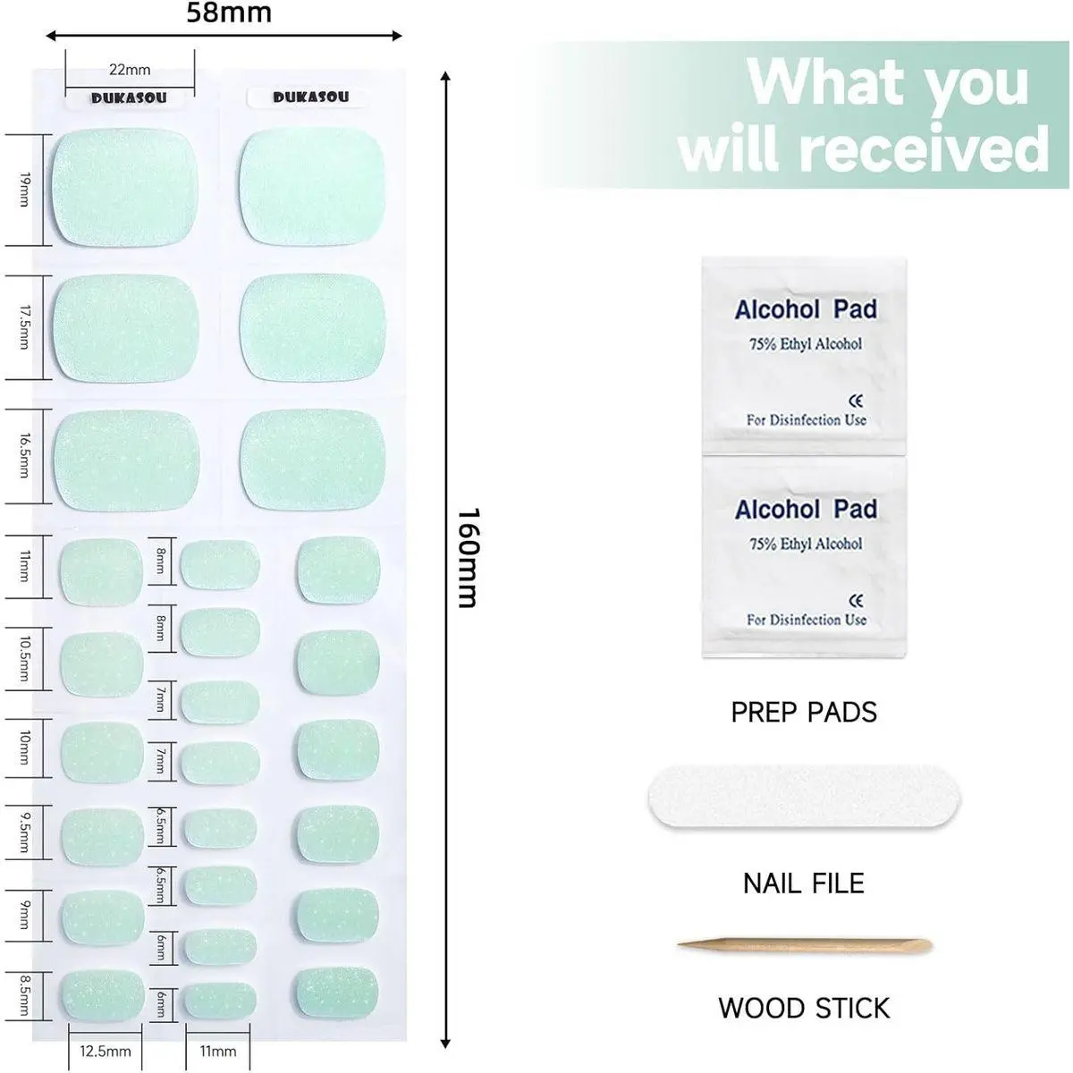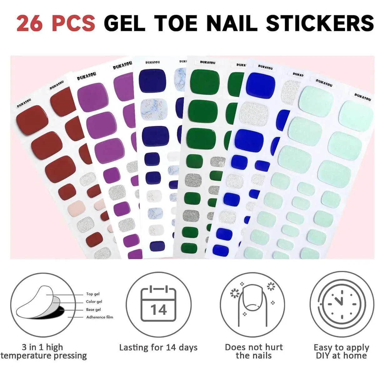 Toe Nail Stickers SET:Toe Nail Stickers Full Nail Wraps package contains 26 gel nail stickers in different sizes. The toe nail polish strips also comes with 2 prep pads, 1 nail file(trimming the edge), and 1 wooden stick (pressing the edge and removing). Our semi cured gel toe nail strips is suitable for all types of nail sizes and shapes