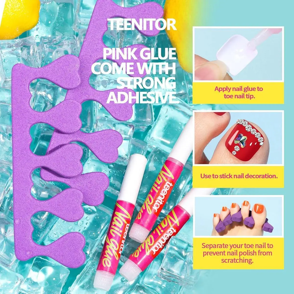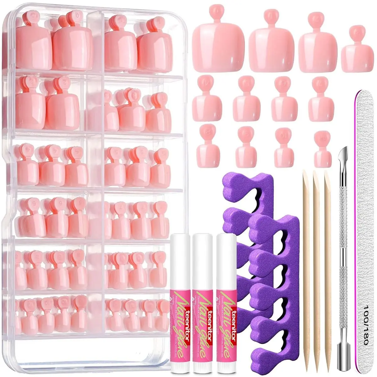 Teenitor Nail Glue Is Included in This Set: You will get 3pcs 2g nail glue at the same time, do not need to purchase separately, our nail glue is pink and made from premium material, easy to apply on artificial toenails or stick nail decoration on it