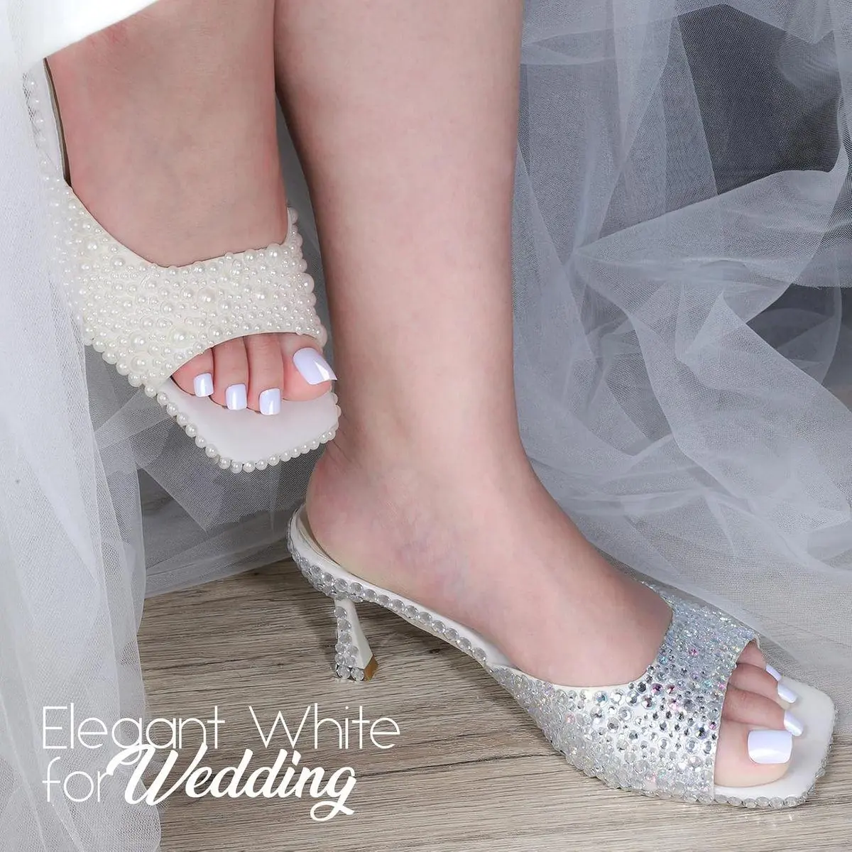 Solid White Toenails Press On: These short square toe nail tips are white color, compare with natural color, Teenitor white toe nails won’t too transparent, perfectly full cover you natural toe nail. Not gel nail polish needs but looks natural and elegant, suitable for open toed shoes in wedding