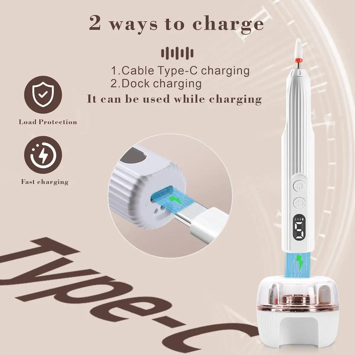 ⚡ 【 Rechargeable Cordless Nail Drill 】DUAL CHARGING & LONG RUNTIME: This Nail Filer Electric is 500mAh built-in battery supports 2+ hours portable cordless use on low heat/low vibration mode. This acrylic nail drill kit Charge via base or direct USB-C – perfect for salon & travel! The ideal efile nail drill tool for women.