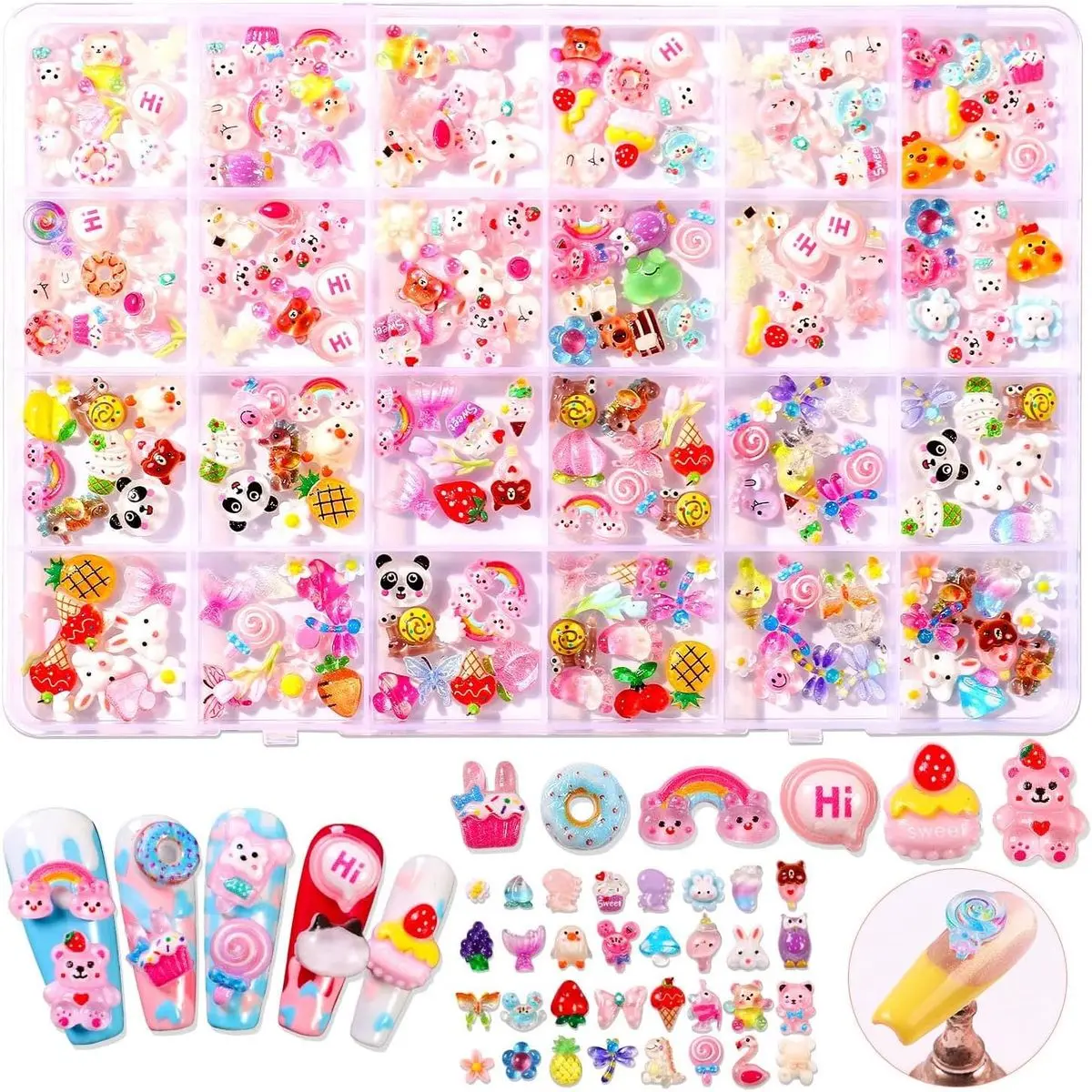 Color Assorted Nail Charms: You will get 24 grid different styles of 3D color nail charms