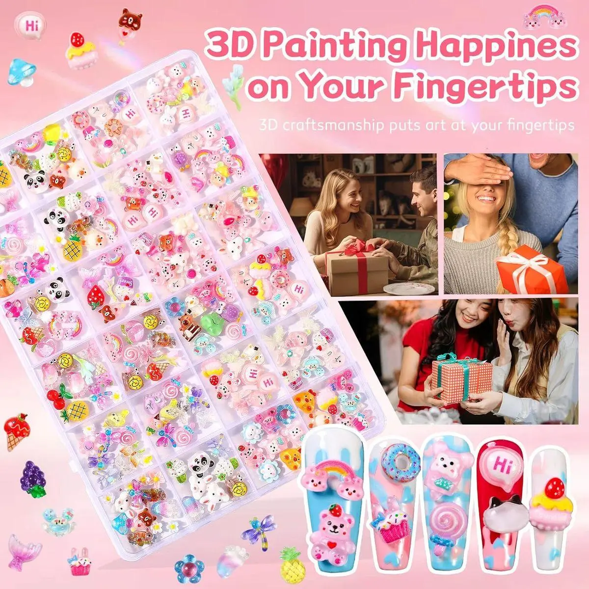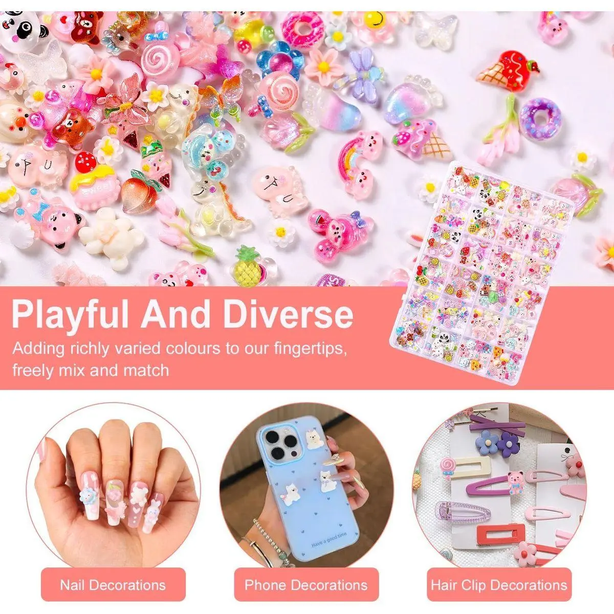 Assorted Nail Charms: The nail charms come in a variety of styles, including rainbow, candy, butterfly, bears, ice cream, flower, and cloud, to cater to different DIY design needs.