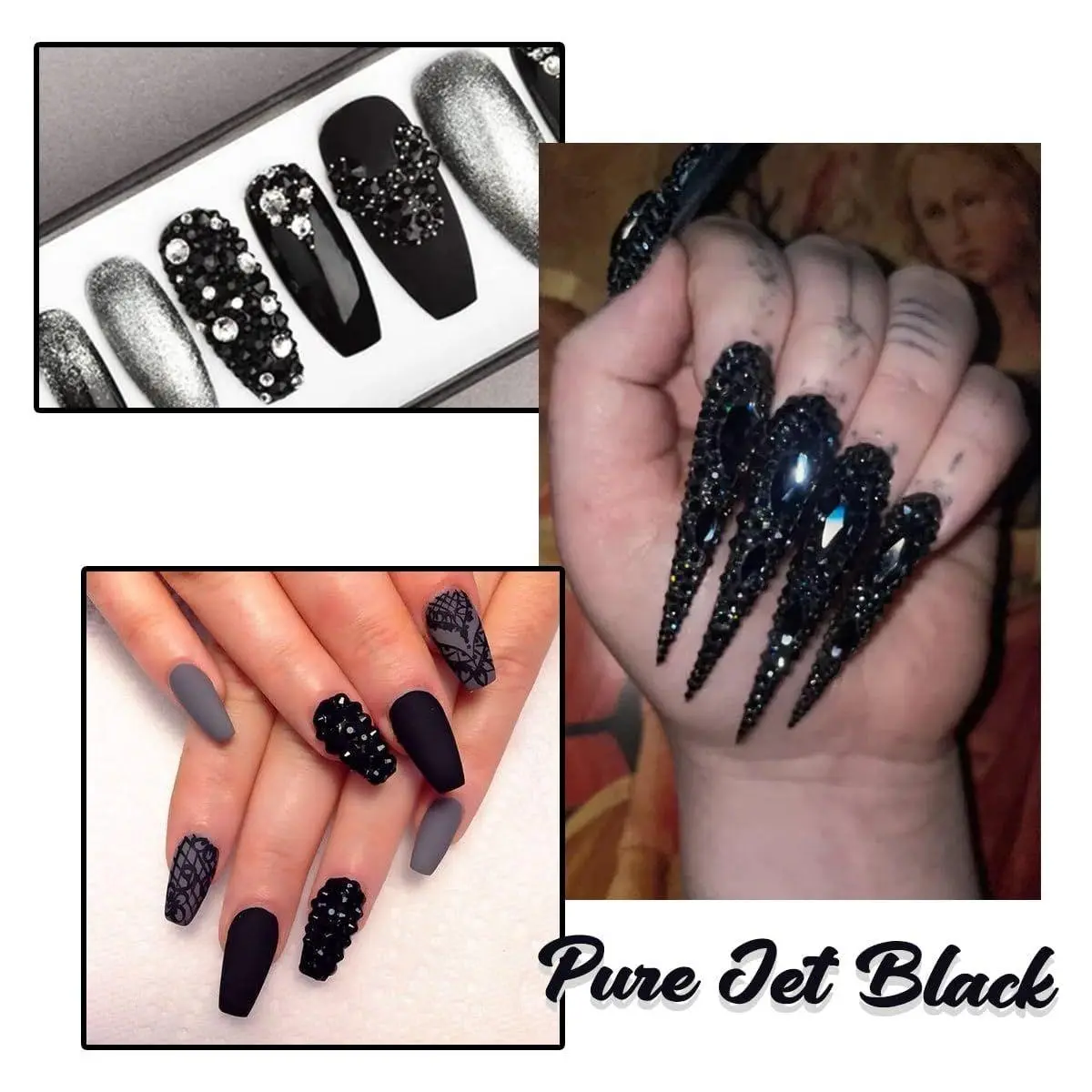 ❤【1 Box Multi-sized Dark Black Round Beads & K9 Glass Quality Craftsmanship】6 different sizes(1.6-4mm) dark black rhinestones(1.6mm pixie crystals*ca 800pcs; SS6*450pcs; SS8*300pcs; SS10*250pcs; SS12*150pcs; SS16*100pcs), achieve different designs of nail art, add sparkle and glamour to your crafts. Nail art crystals diamonds rhinestones are made of K9 glass, more durable and reliable. The sparkling nail gems rhinestones for nail art will make your nails shine and eye-catching.