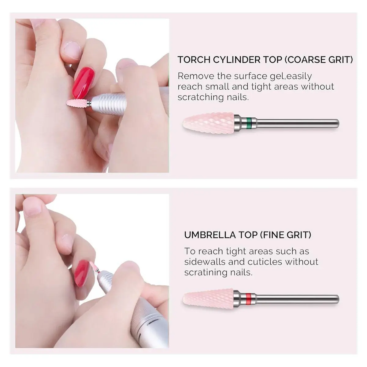 Premium Ceramic Material: Made of ceramic material, these nail art tools are hard-wearing, sharp, and durable, and also crafted with delicacy. With excellent heat dissipation, the bits won't be burning hot during long-time use like metal ones.