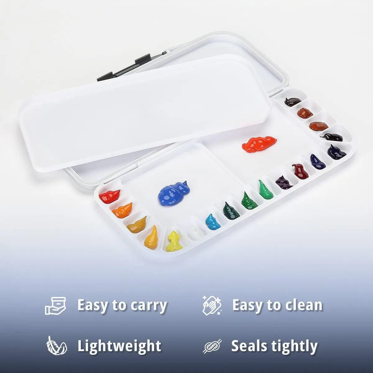 Airtight 18-Well Watercolor Palette with 2 Mixing Areas and Lid - Folding Paint Tray