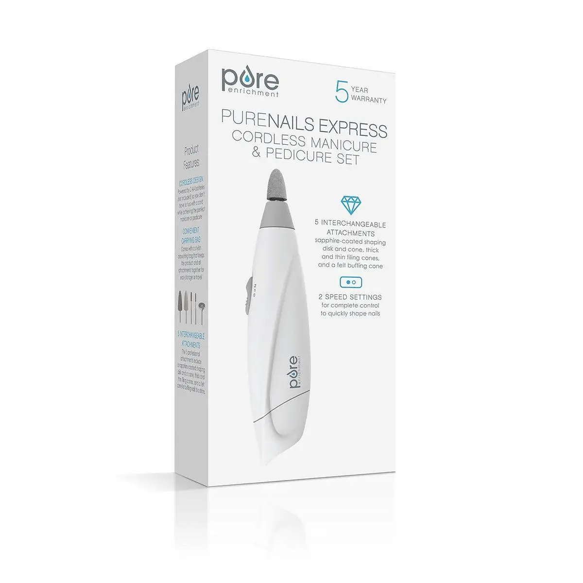 What You Get: Electric nail drill, 5 drill attachments, storage bag, industry-leading 5-Year Manufacturer's Warranty, caring customer support 7 days a week, and the peace of mind that comes from a trusted brand with millions of customers worldwide