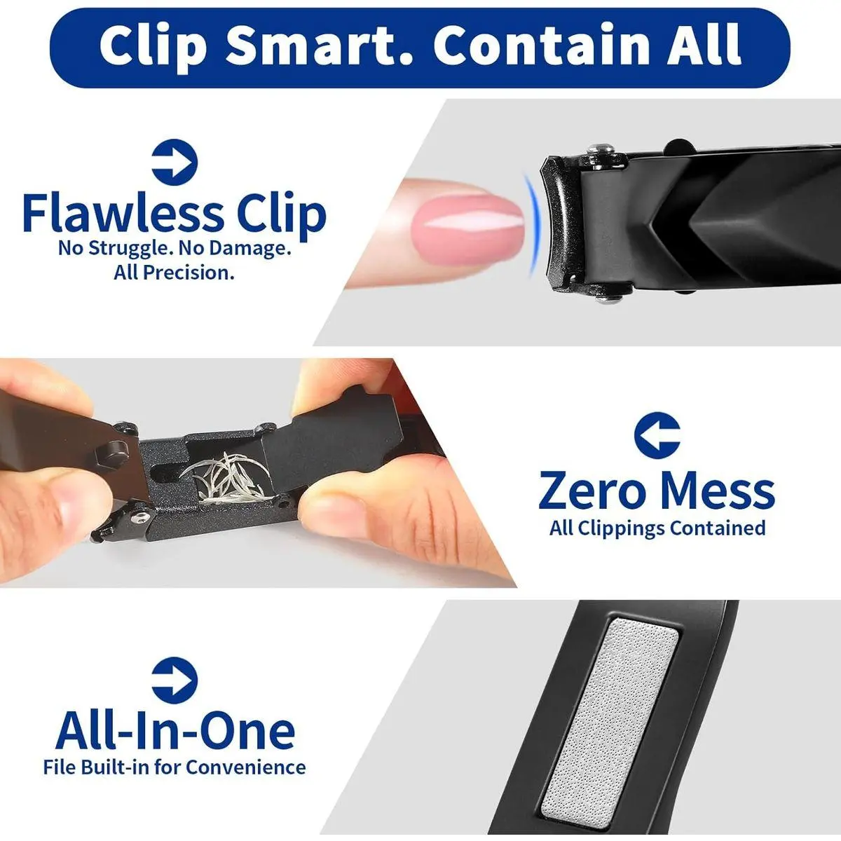🎯 100% No-Mess Guarantee: Forget chasing clippings! Our patented catcher securely contains every piece for a perfectly clean trim. Enjoy worry-free grooming in bed, at your desk, or on the go—just clip, open, and tap. Finally, nail care with zero cleanup.