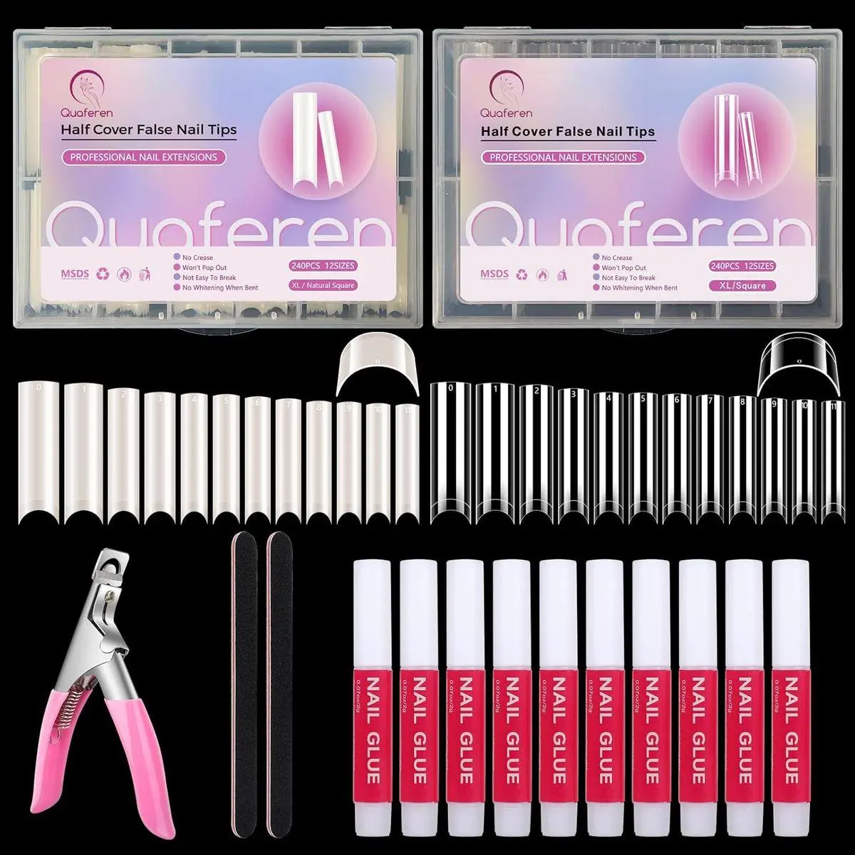 Try Different Shape - Clear xl nail tips extra long have a certain length and shape, you can make many different types of false nails by trimming and polishing, for example, short coffin ballerina, long french nails, long stiletto false nails, middle length ballerina tips.Just try all the types you like feel free