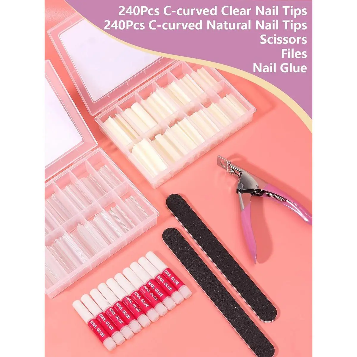 High Quality ABS Material - Half cover c curve nails are made with environmental friendly high quality ABS material, which is thick and sturdy enough to last about 2-3 weeks. What's more.it's no toxic, no smell, no harm to your nails, providing you a safe and comfortable nail doing experience