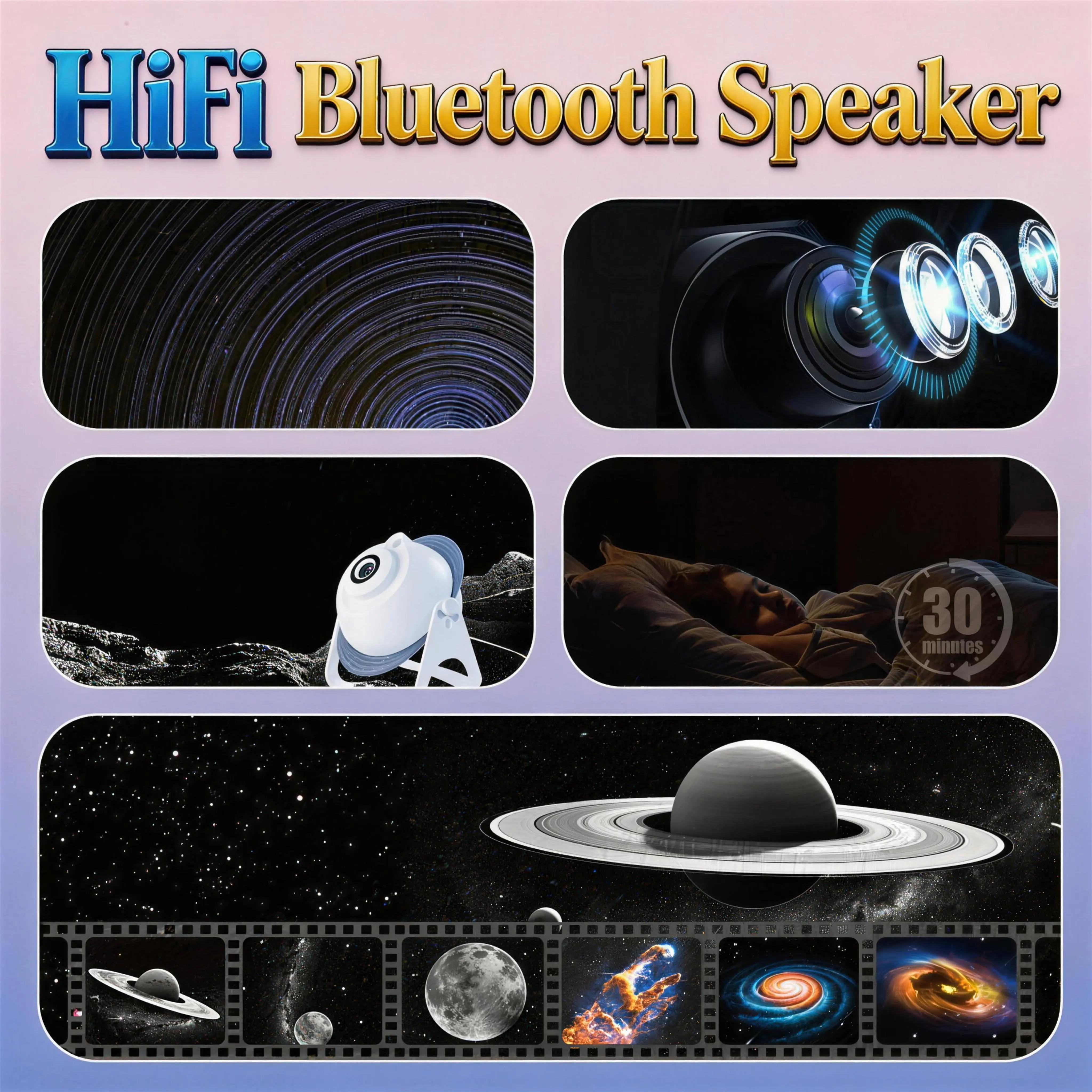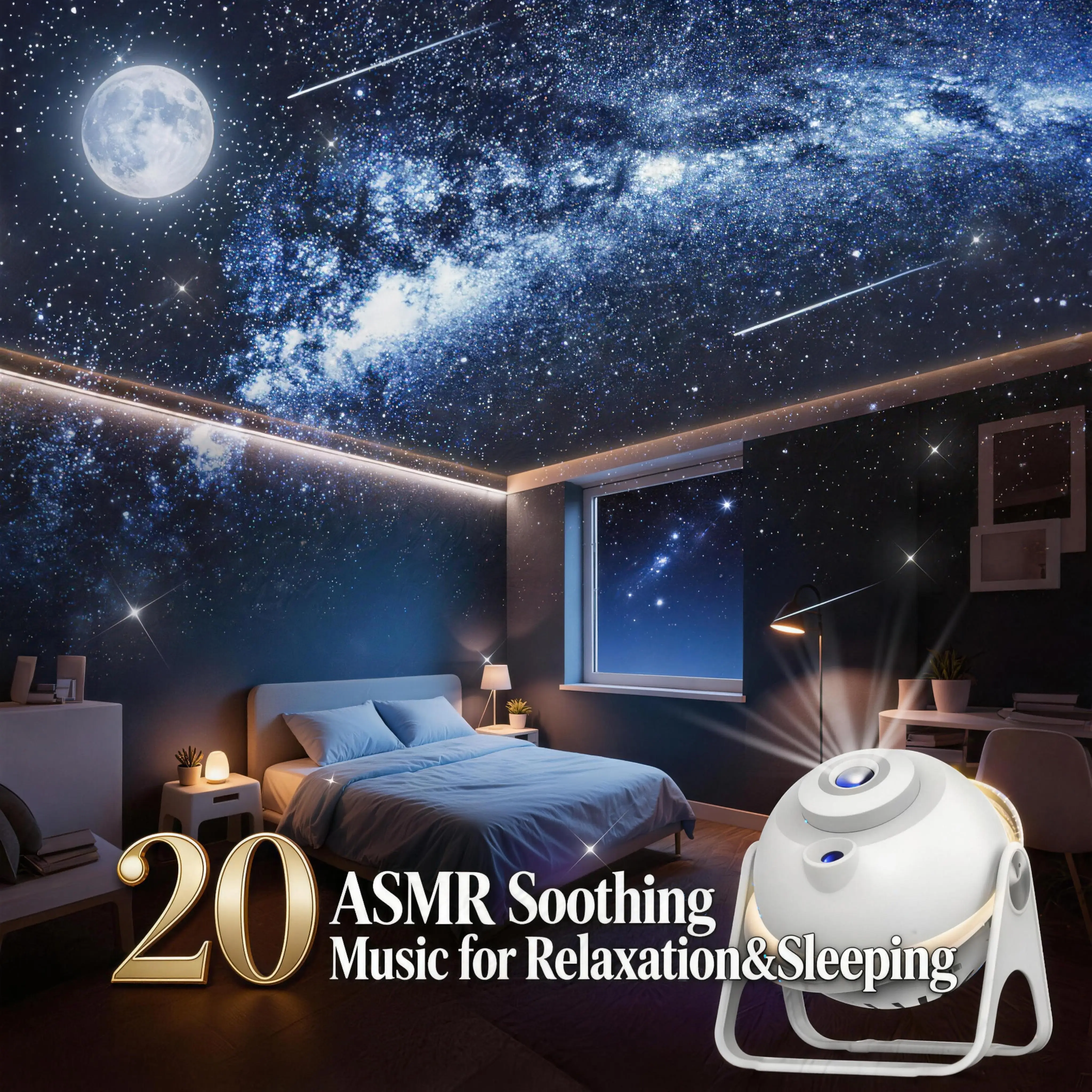 Galaxy Star Projector, ASMR Visual & Auditory Sleep Aid with 13 HD Film Discs, 20 Soothing Sounds, Meteor Shower Effect, Built-in Bluetooth Speaker, Remote Control, Dimmable Night Light for Bedroom Relaxation