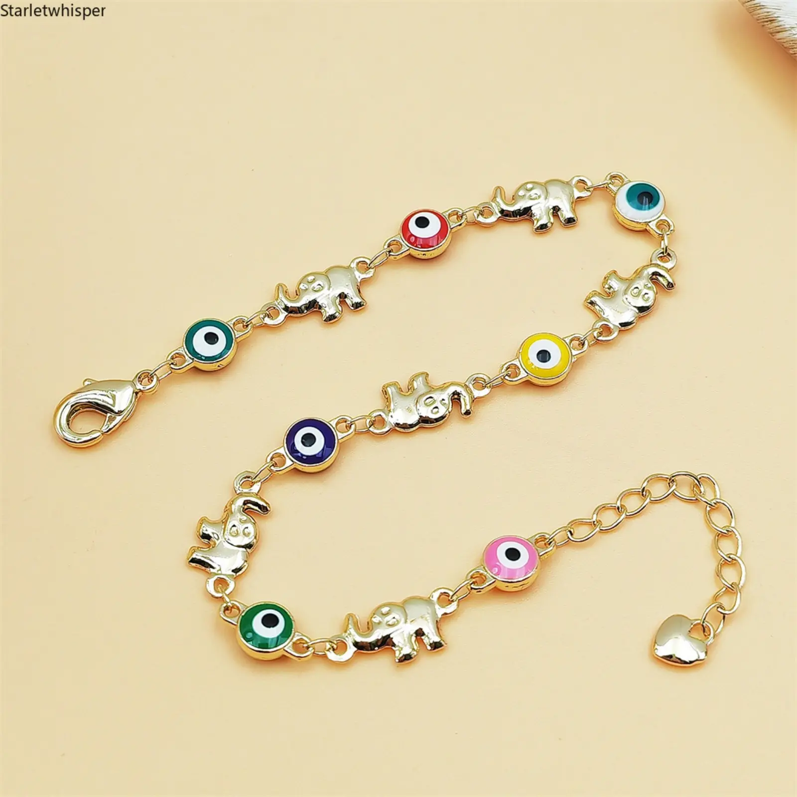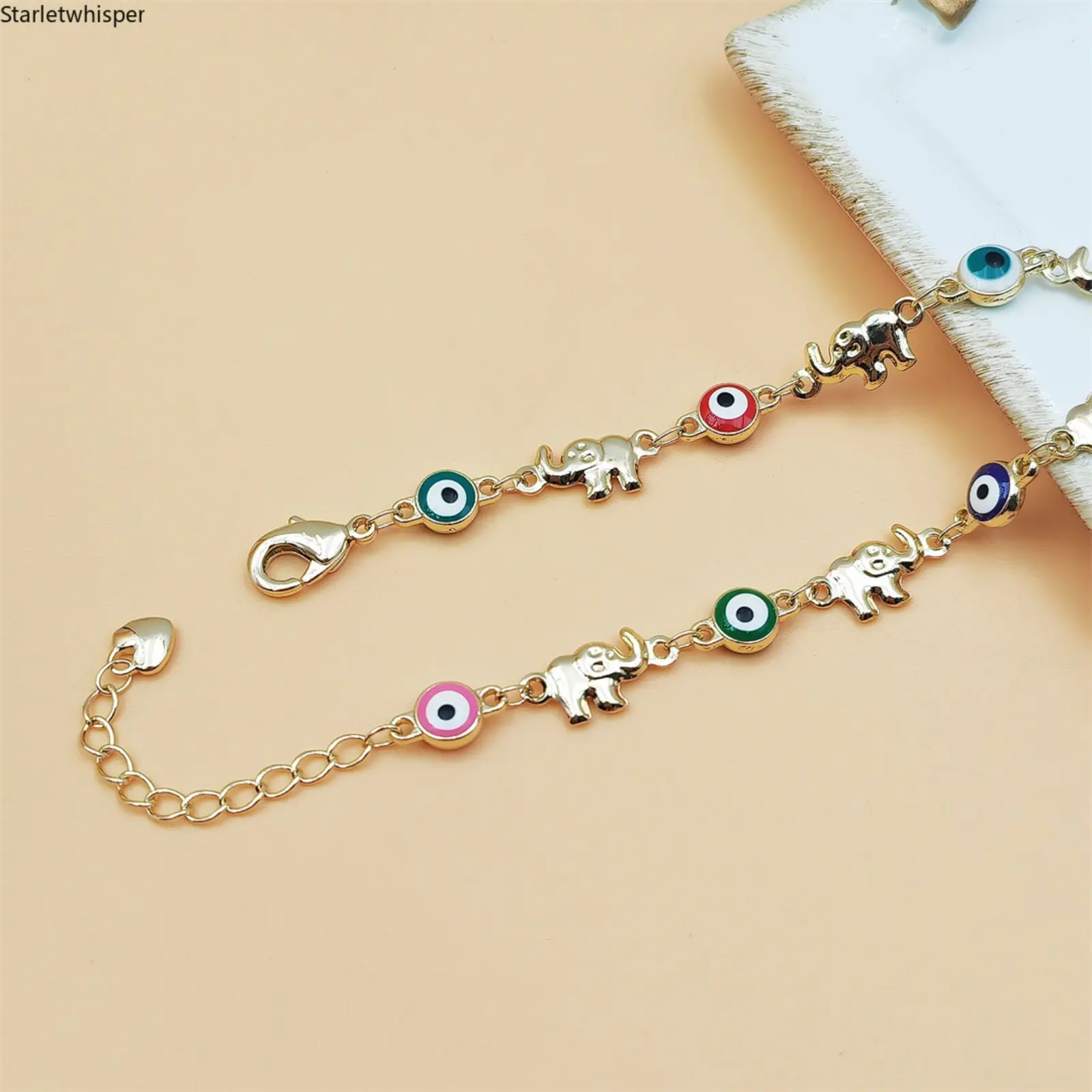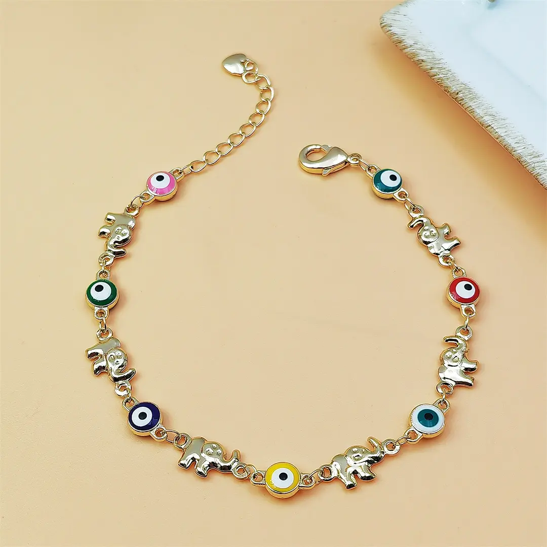 Boho Multicolor Evil Eye Bracelet for Women 18K Gold Plated Copper Chain Dainty Stackable Jewelry Trendy Aesthetic Accessory for Daily Wear Vacation Party Beach Outfits & Birthday Gifts