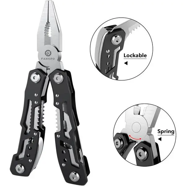 The multitool features a side lock design. Every tool and knife (except pliers heads) locks when fully open. This ensures safety and prevents accidental injuries.