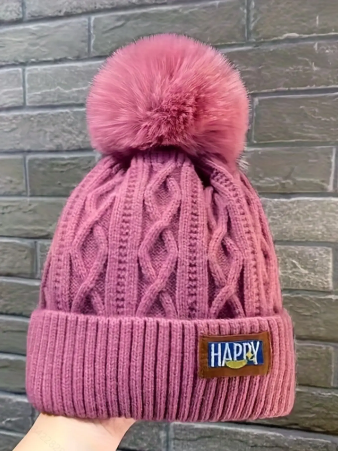 5. Autumn Winter New Fleece Warm Hat, Korean Style Happy Fashion Simple Face-Saving Letter Couple Unisex, Men Women Same Model