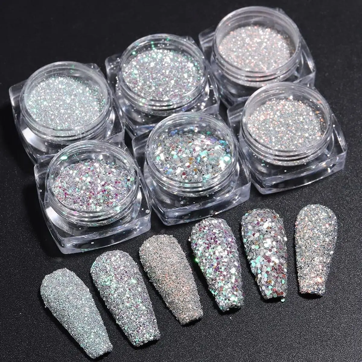 【Easy to Apply】 You can use the reflective glitter as dip powder. Besides,you can apply the powder on no cure gel polish to get sugar coating effect or shiny glittery french tips nail design.