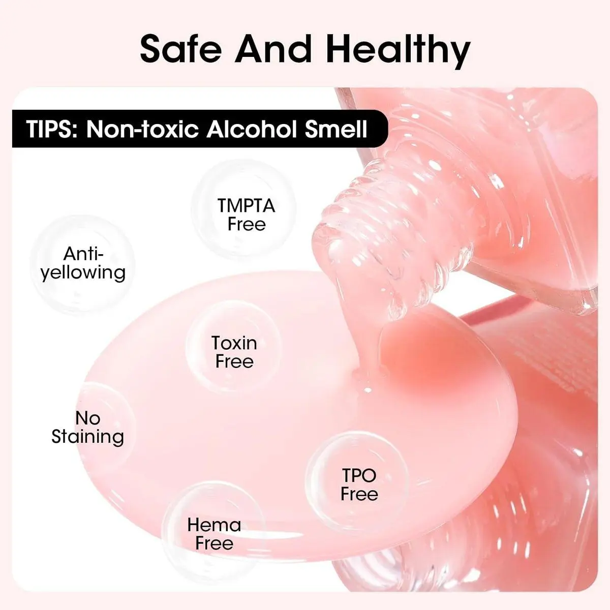 Clean, Safe & Cruelty Free – HEMA-free, TPO free, TMPTA free, vegan, toxin-free, no staining, no yellowing, clean nail polish. Non-toxic alcohol smell