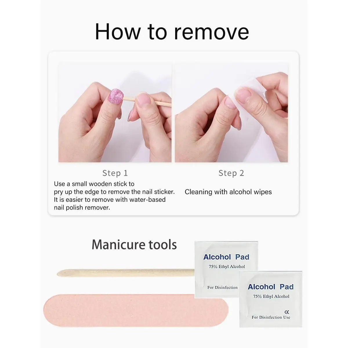 【No UV Gel Nail Stickers】22 sheets of gel nail stickers, with 1 nail file, 1 nail stick and 2 cleaning cottons, making your nail art decoration more convenient.