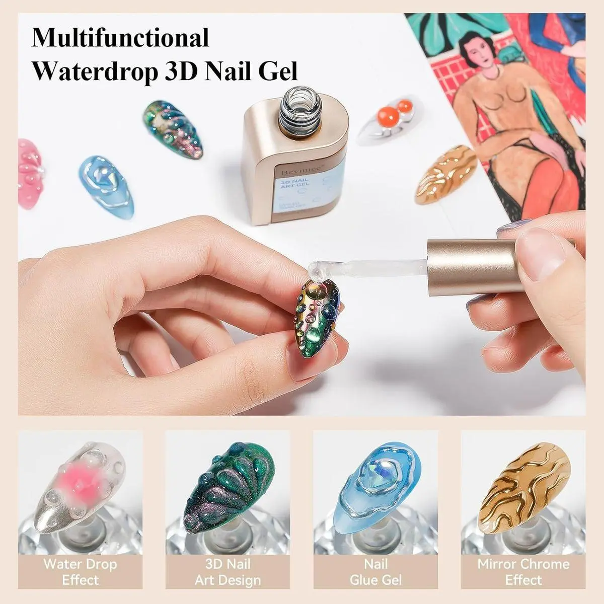 Rain Drop Effect: Bevimee 3d gel nail art is easy to use and has a 3D-like effect, Elevate your nail art game with a touch of ethereal beauty, one drop at a time; Experience the magic of nature on your fingertips with our Water Drop Effect Gel Nail Polish