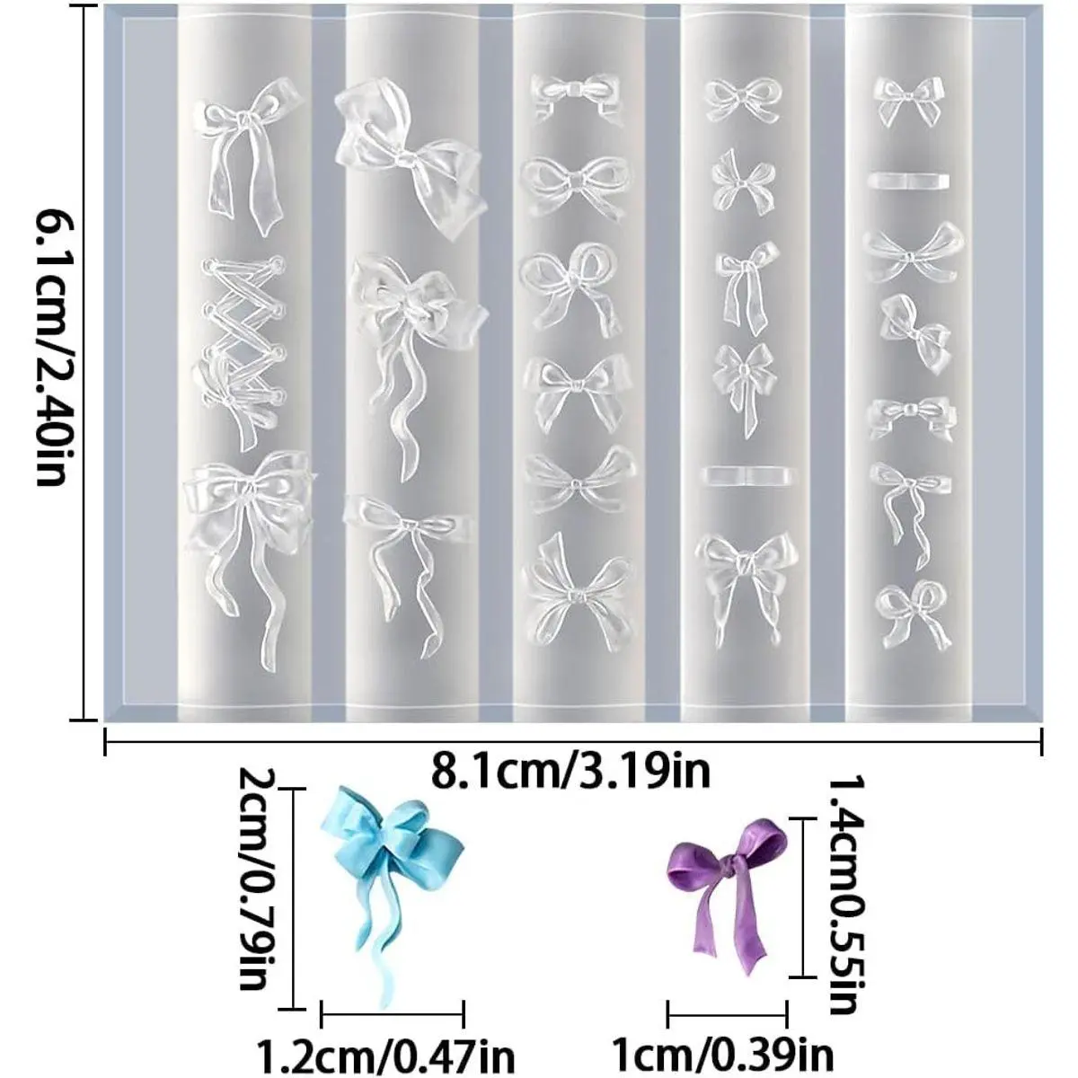 【Reusable Premium Silicone Molds】Bow charms nail art mold is made of flexible, premium silicone with nice elasticity and durability for easy to release, clean, store and carry, reusable and can accompany you to explore the infinite possibilities of nail art