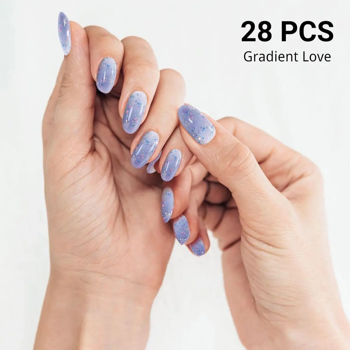 4. Semi Cured Gel Nail Strips, 28pcs Gradient Love Gel Nail Stickers Work with Any UV Light, Full Nail Art Wraps for Women Girls Kids DIY Gift, Include Prep Pads, NailFile&Wood Stick