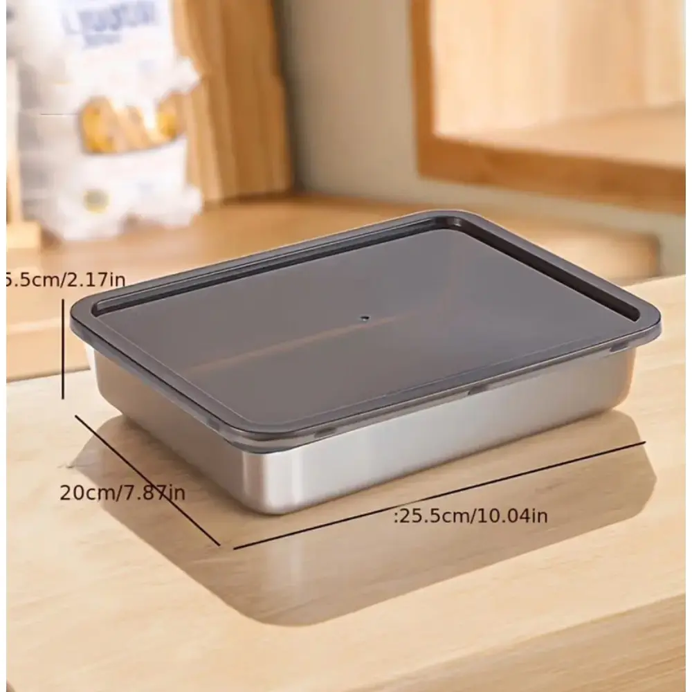 3 Pcs Stainless Steel Food Storage Containers with Lids, Square Trays, Refrigerator Organizer Boxes, Plates, Picnic Boxes, Dumpling Trays, for Freezing and Refrigerating