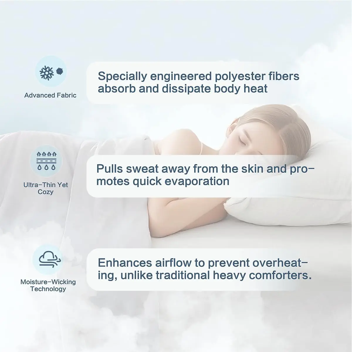 Ultra-Soft Touch--This comforter features hypoallergenic polyester fiber filling, delivering cloud-like loftiness and a balanced, cool feel.Its open-weave construction enhances breathability, creating a silky-smooth texture that drapes elegantly and gently cradles you through the night.Premium Craftsmanship Details--The blanket feature high-quality quilting techniques to prevent leakage or loose threads, ensuring the bedding stays firmly in place.Crafted with selectfabrics,, enhanced with thoughtful features like a non-slip backing.Meticulously crafted for lasting durability.Year-Round Temperature Regulation--Features premium, skin-friendly microfiber fabric that combines exceptional softness with breathability, ensuring a dry, sweat-free night's sleep.In summer, it efficiently wicks away moisture to keep you cool and dryin winter, it locks in body heat for cozy warmth, creating the ideal sleep environment year-round.Convenient Care--The lightweight solid comforter Size machine washable in cold water on gentle cycle with quick drying.Durable against fading, pilling, and shrinking.Supports low-heat tumble drying for effortless upkeep-perfect for busy lifestyles or those seeking simplicity.Product Details--Queen size: 80*90 inchesFits most bed types.Versatile use as a sofa throw, office blanket, travel blanket,or pet blanket.Ideal for home, dorm, camping, or travel sleep scenarios.