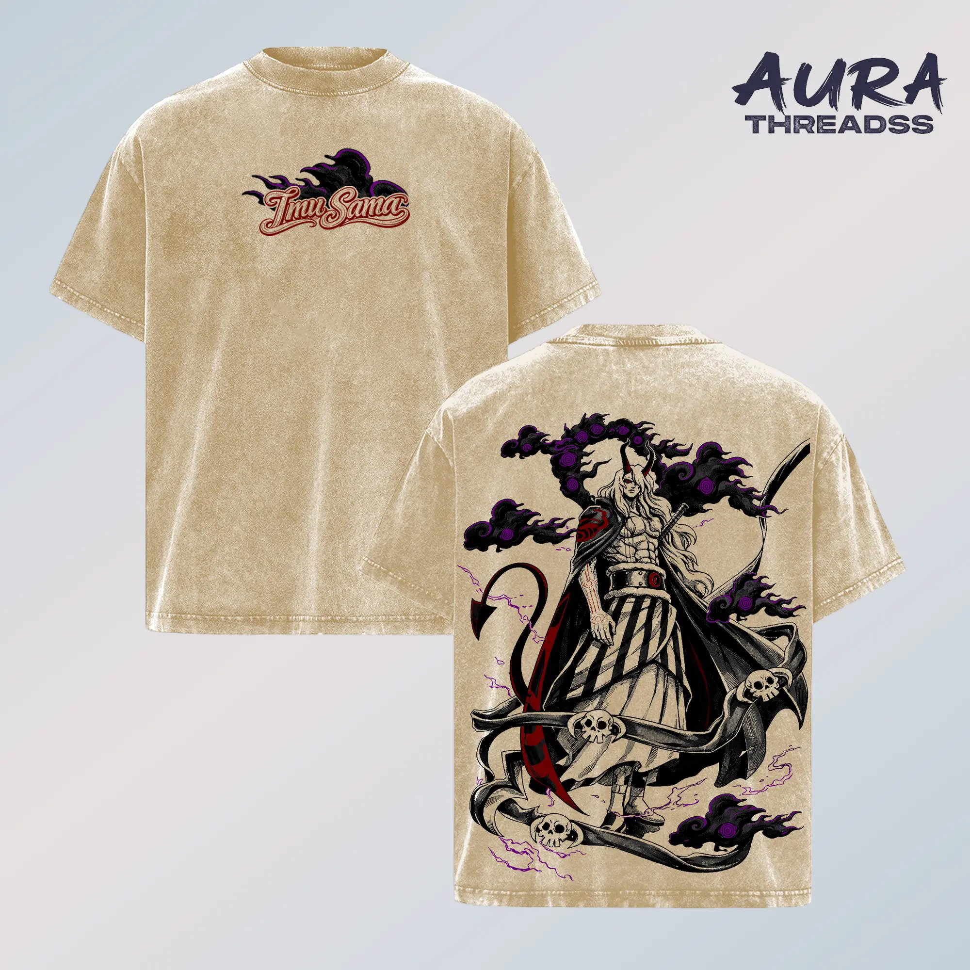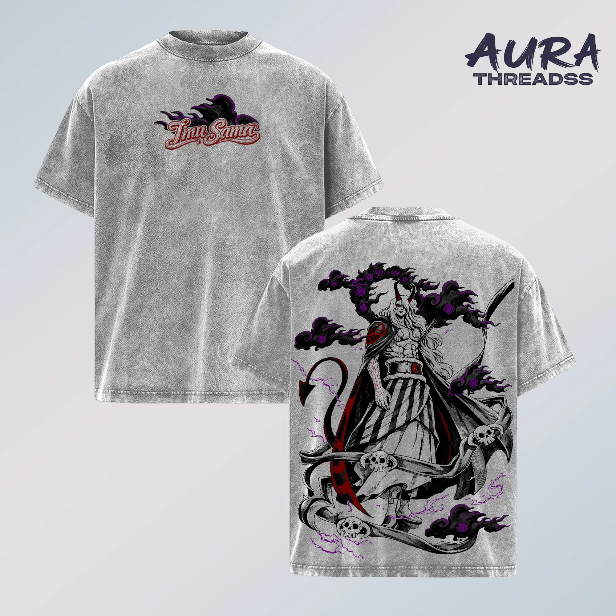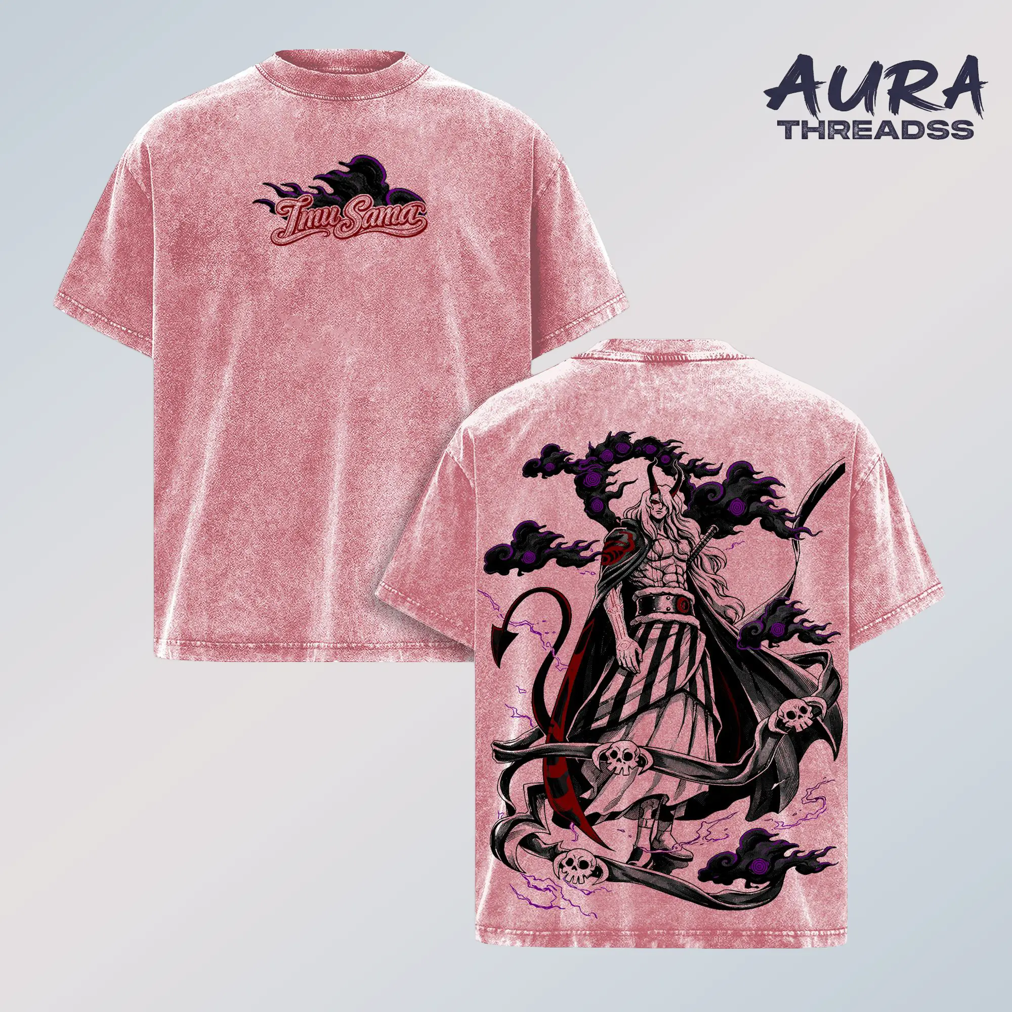 Imu Sama One Piecee T-Shirt, Saint Nerona Imu Graphic Tee, Final Saga Elbaf Arc Shirt, Vintage Washed Anime Streetwear T Shirt, Imu Sama Back Print Manga Graphic Tee, One Piecee Anime Fan Shirt, Soft Cotton Streetwear T-Shirt, Unisex Casual Wear