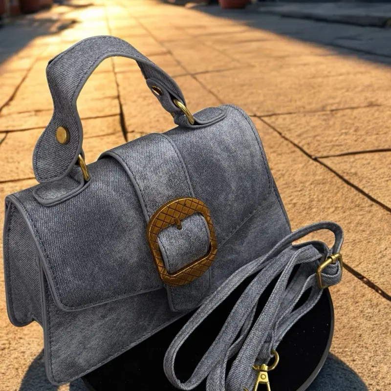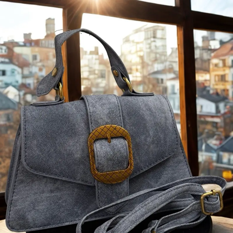 Elegant Jean Handbag with Gold Accents Secure Closure for Everyday Use Stylish and Durable