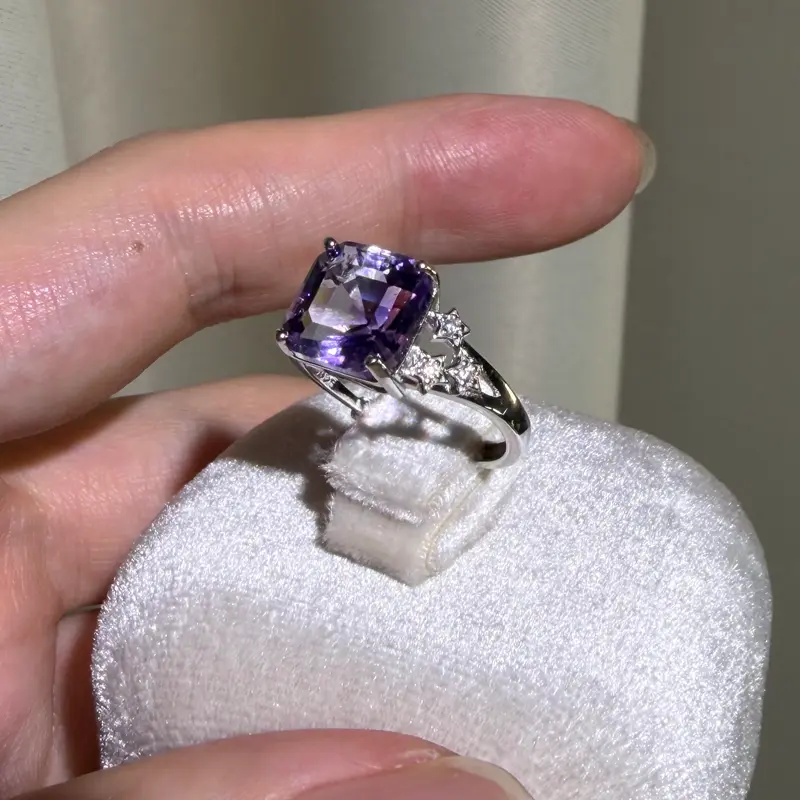 S925 sterling silver ring, Nature Amethyst gemstone, adjustable size, set size wirh a 9*9mm, high quality setting Engagement Ring, Elegant and Luxurious for Women,,Grils as Wedding&Birthday Gift, Perfect for Daily Wear and Party, Valentine's Day Gift