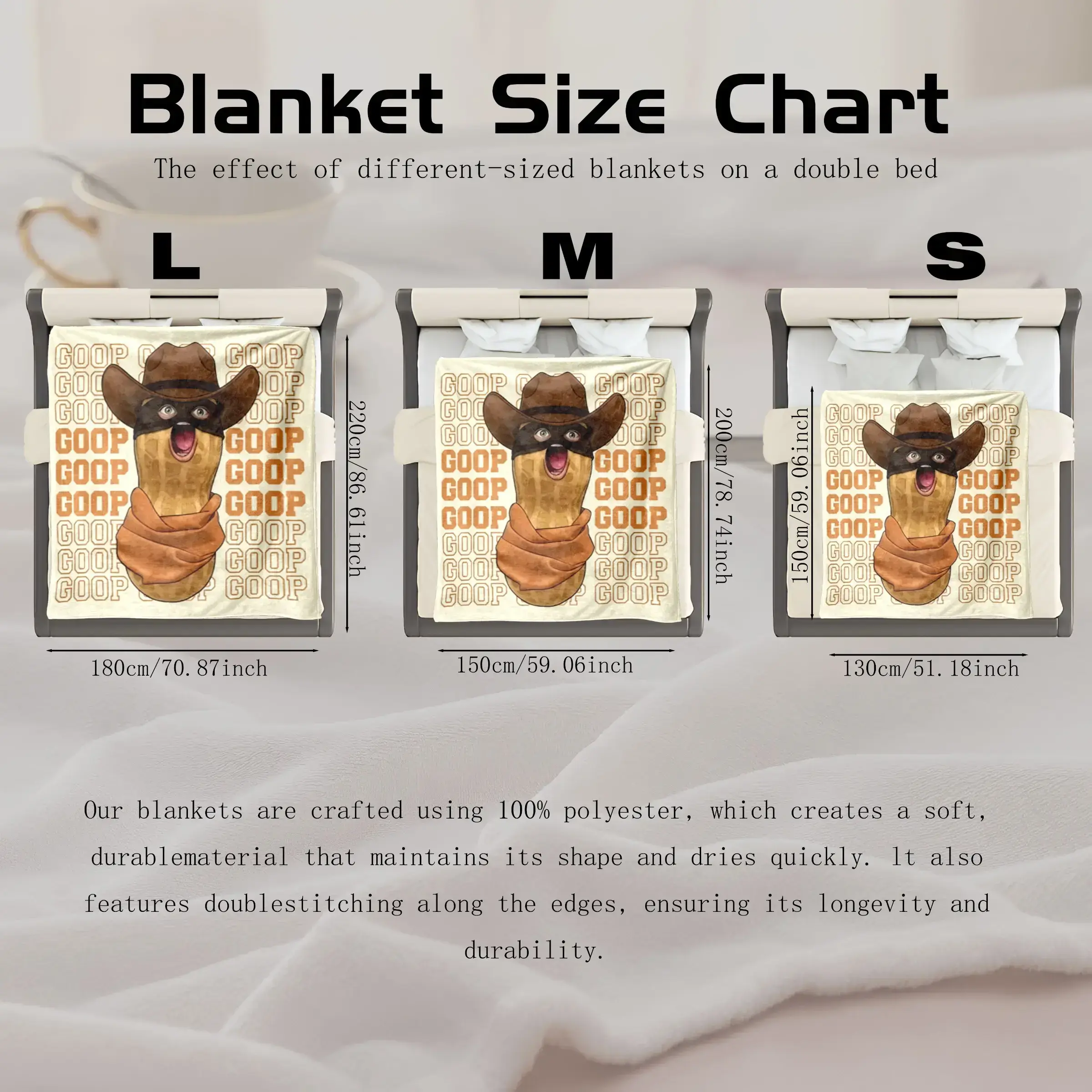 ·Goop Goop Cowboy Peanut Viral Meme Print Flannel Blanket: This blanket features a viral meme print, perfect for meme fans. It's made of flannel, ensuring softness and coziness.