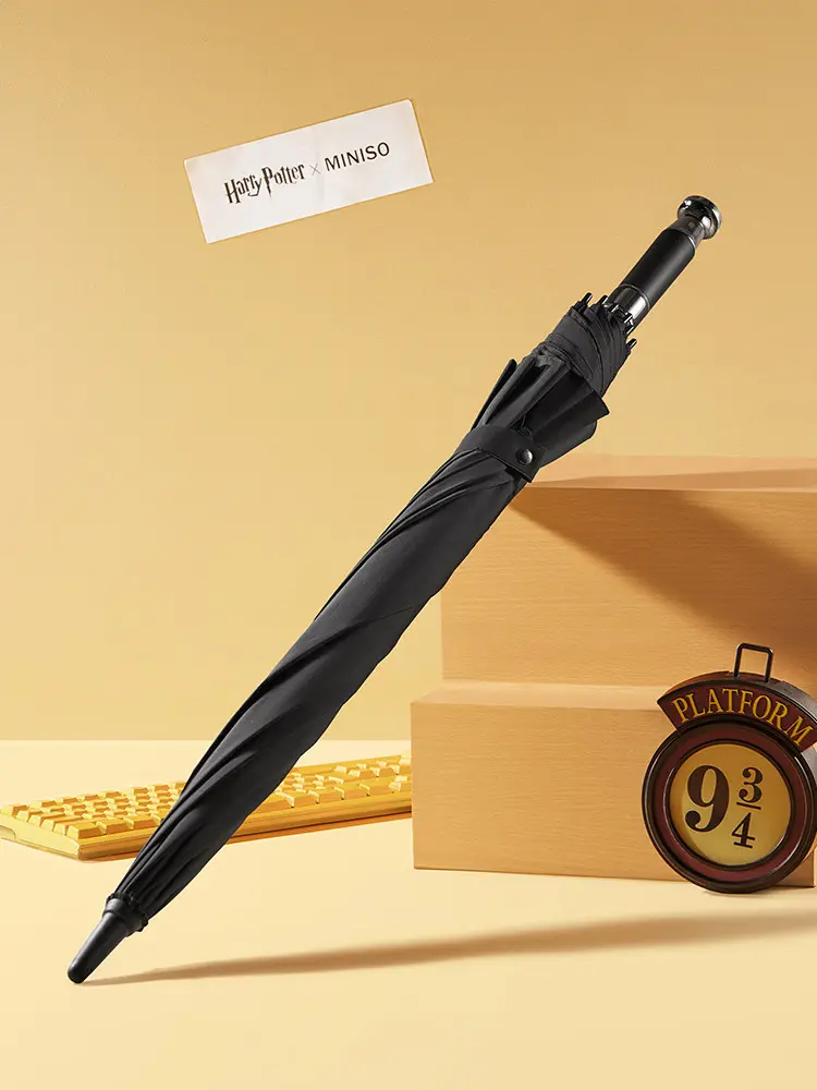 ✨ Discover the magic of the MINISO Harry Potter Black Magic Long Umbrella! This unique umbrella reveals a hidden pattern when activated by water. Perfect for Potterheads, it combines functionality with fun. Ideal for both rain and sun, it offers UV protection and is windproof. A delightful gift for fans of the series.