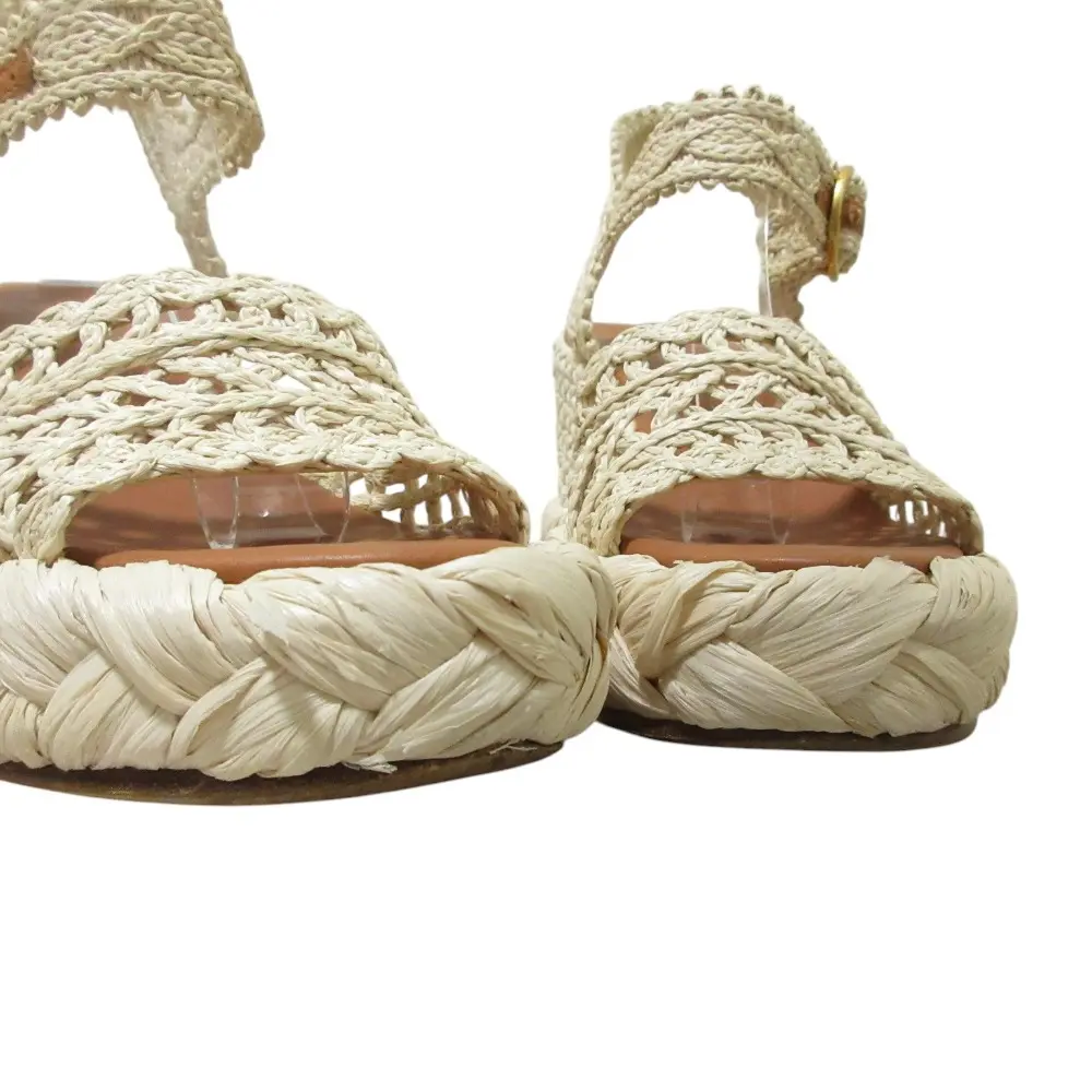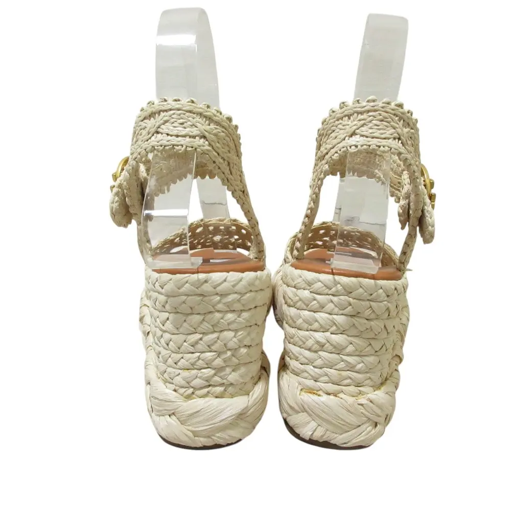 Pre-owned Tory Burch Straw Small Leather Goods Raffia Wedge Sandals