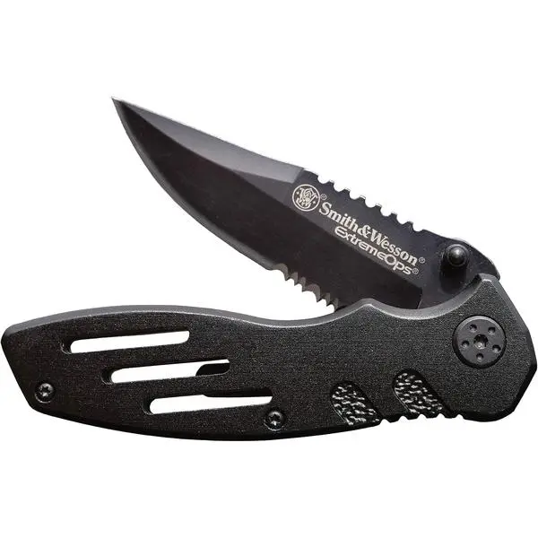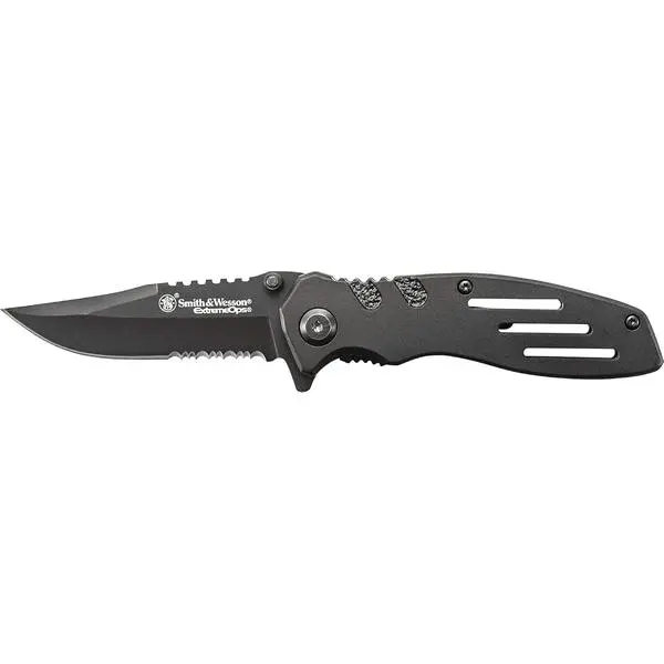 Smith & Wesson Accessories Extreme Ops SWA24S 7.1in S.S. Folding Knife with 3.1in Serrated Clip Point Blade and Aluminum Handle for Outdoor