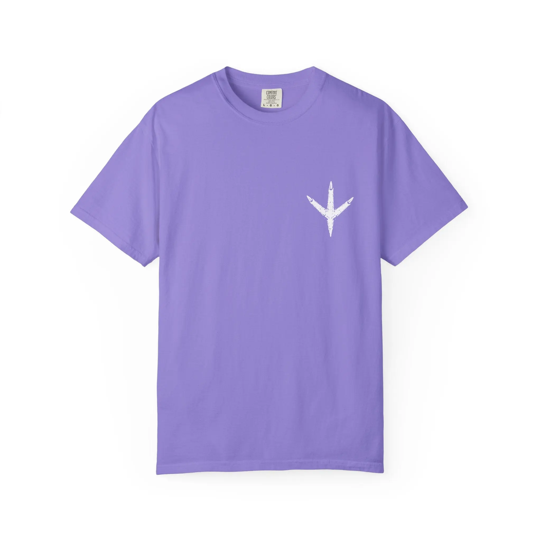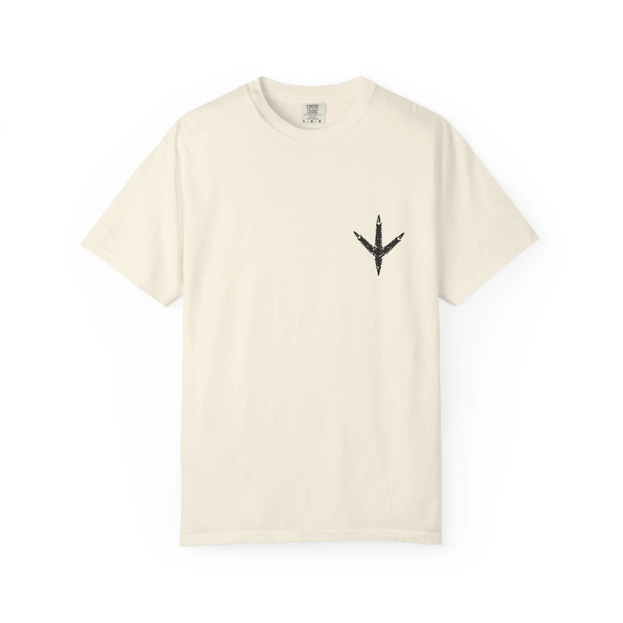 This relaxed, comfort colors tee brings a quiet, rustic vibe to everyday wear. The soft heavyweight cotton drapes comfortably while the dye-after-construction finish gives the fabric a lived-in texture and gentle color depth. A small, turkey track emblem on the chest and a detailed turkey feather and Wing & Water Co. script logo across the back nod to outdoorsy roots — like a trusted layer you reach for after a morning spent on the river or a slow walk through tall grass. It wears in, not out: the sturdy double-needle seams, tubular knit, and pre-shrunk ring-spun cotton mean this shirt keeps its shape and honest feel through wash after wash. Available in many colors and sizes, it blends into a weekend wardrobe for folks who favor heritage style and quiet craftsmanship.
