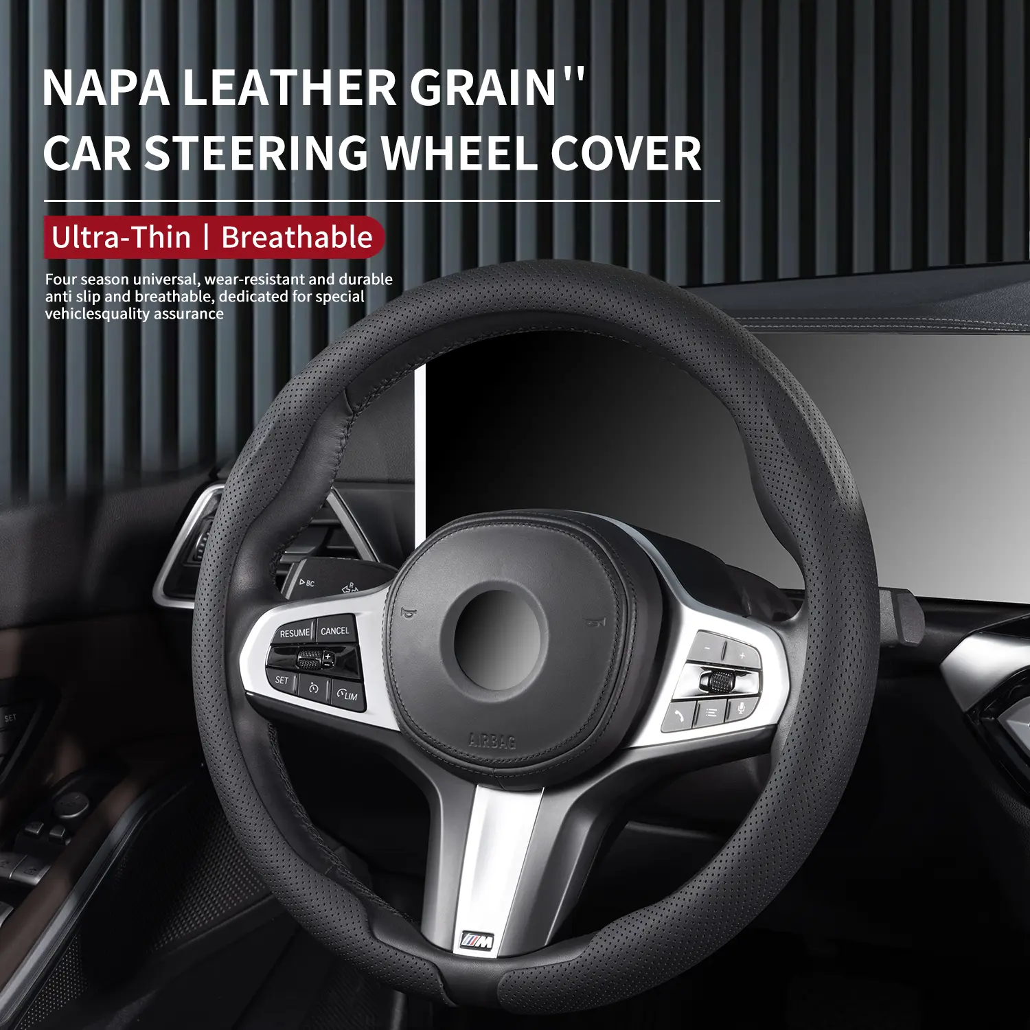·Ultra-thin and ultra-lightweight, this nappa leather cover protects the wheel from scratches and sweat. It covers 95% of the steering wheel surface, offering stylish appearance and a wonderful hand touch. Perfect alternative to traditional covers.