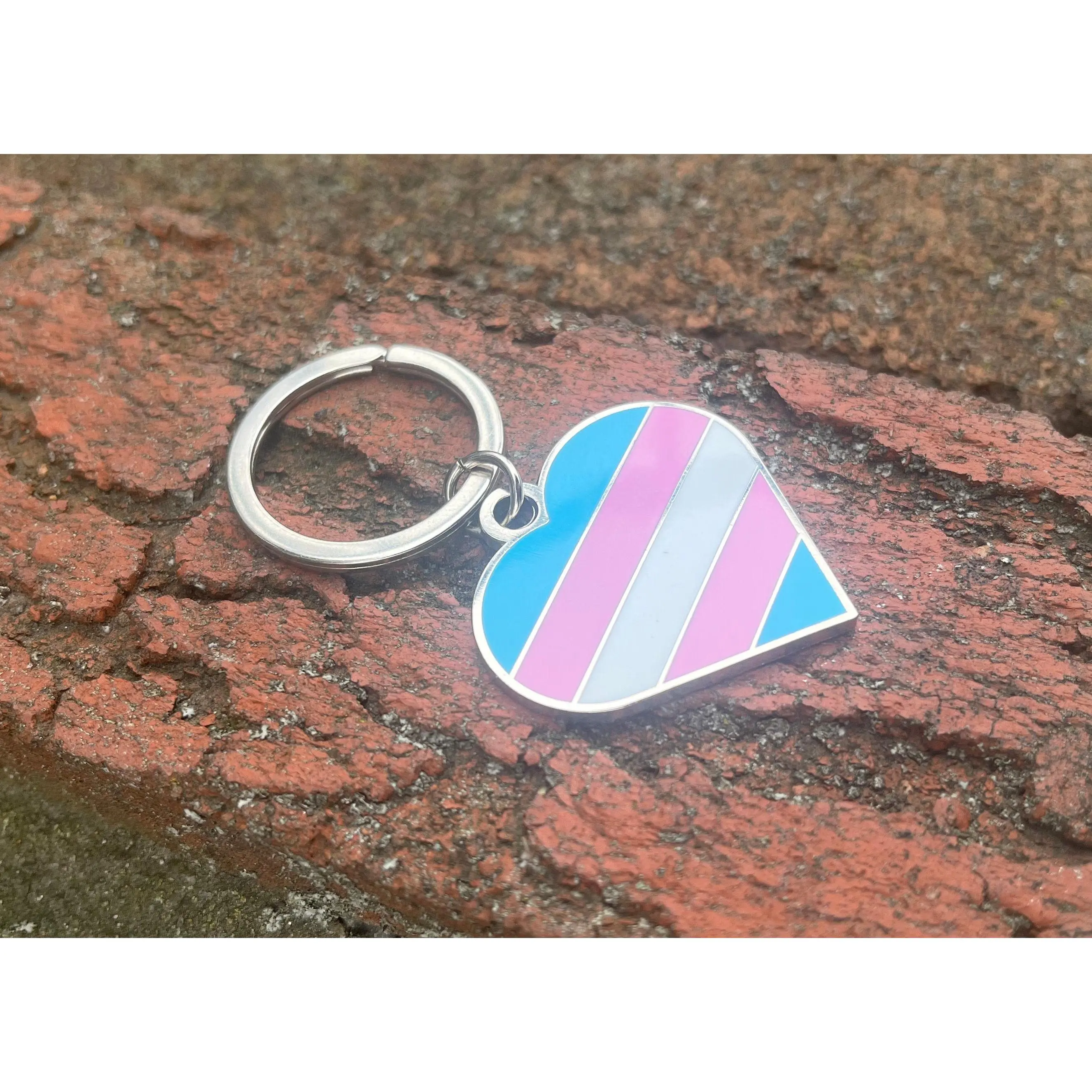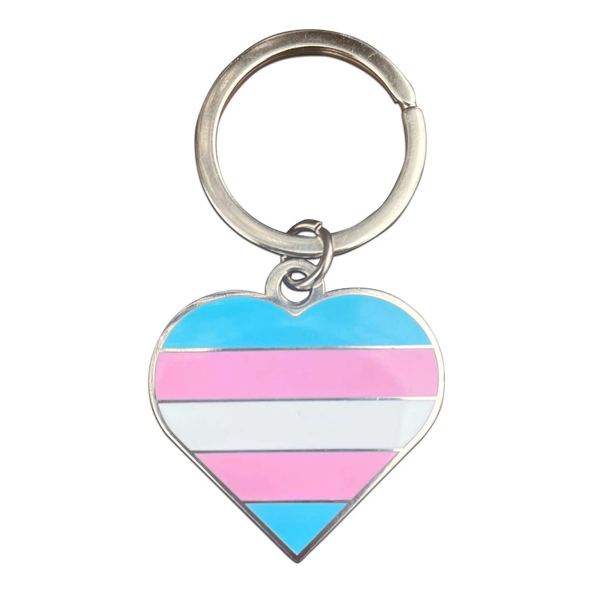 Transgender Flag Heart White Pink and Blue LGBTQ Support Pride Symbol - 1.5 inch Enamel Keychain with Keyring