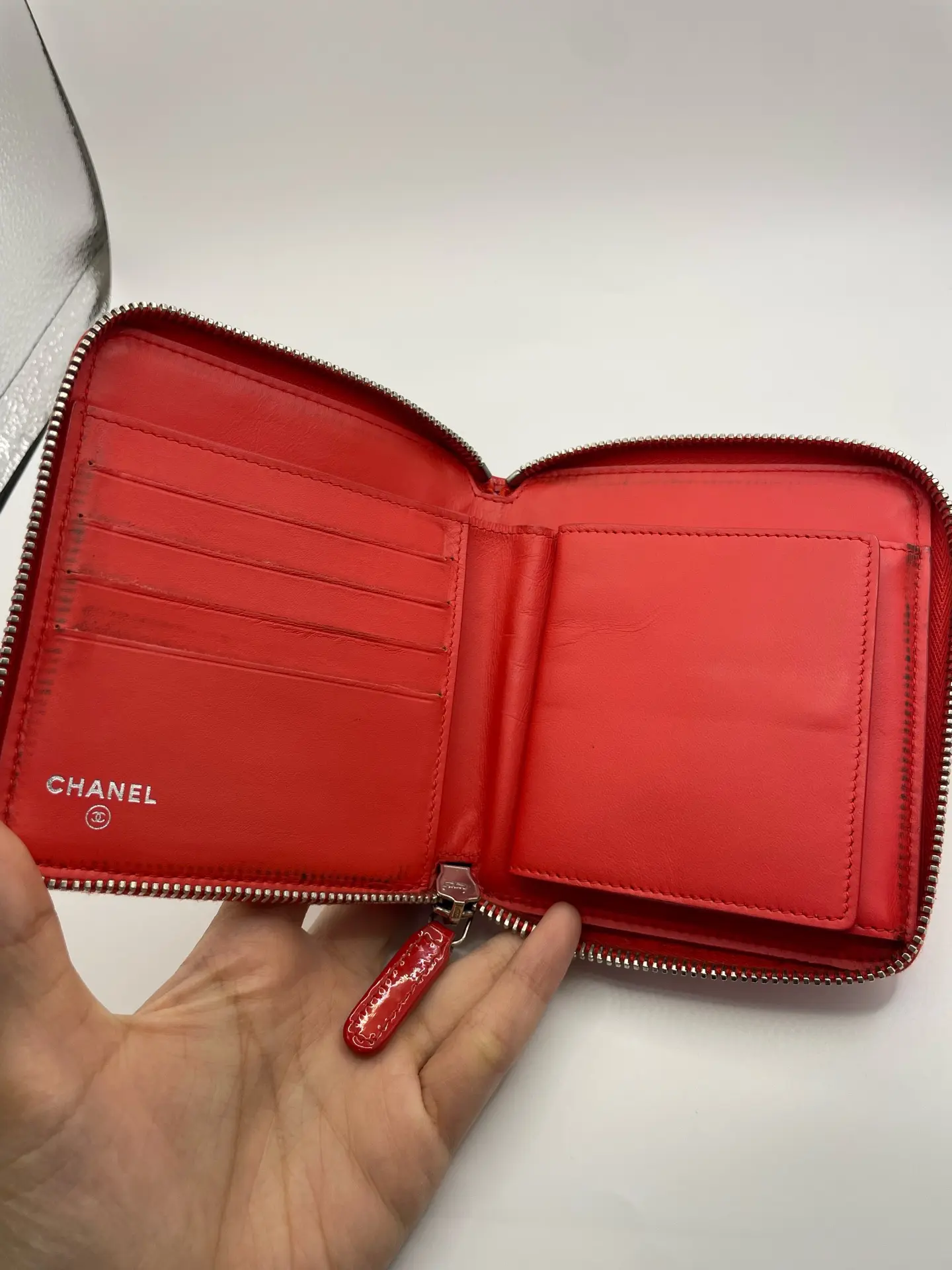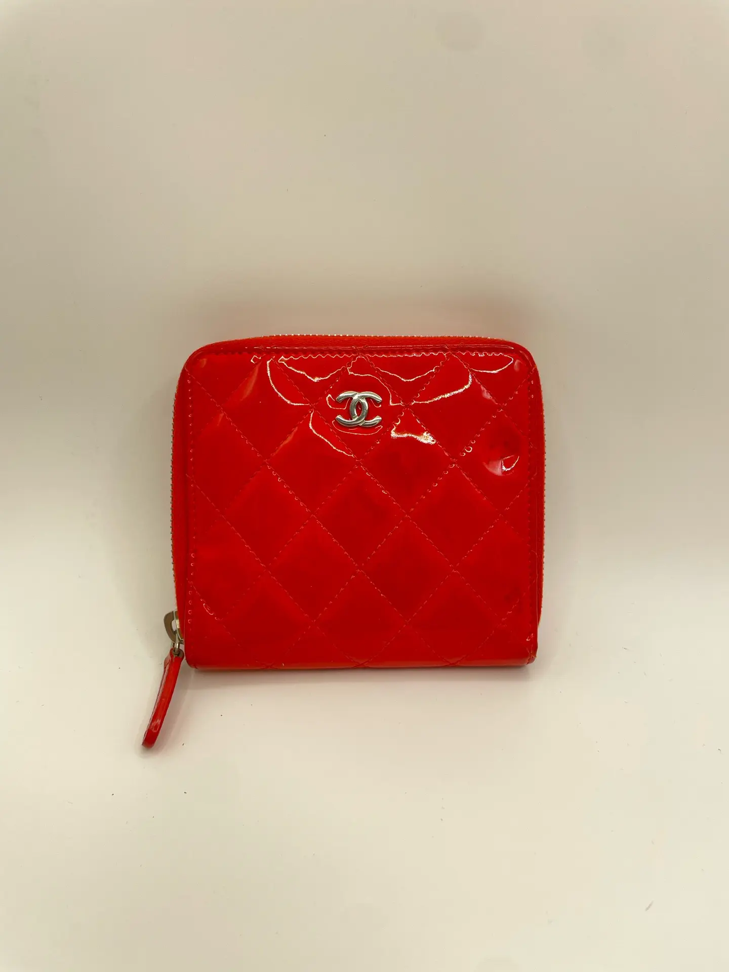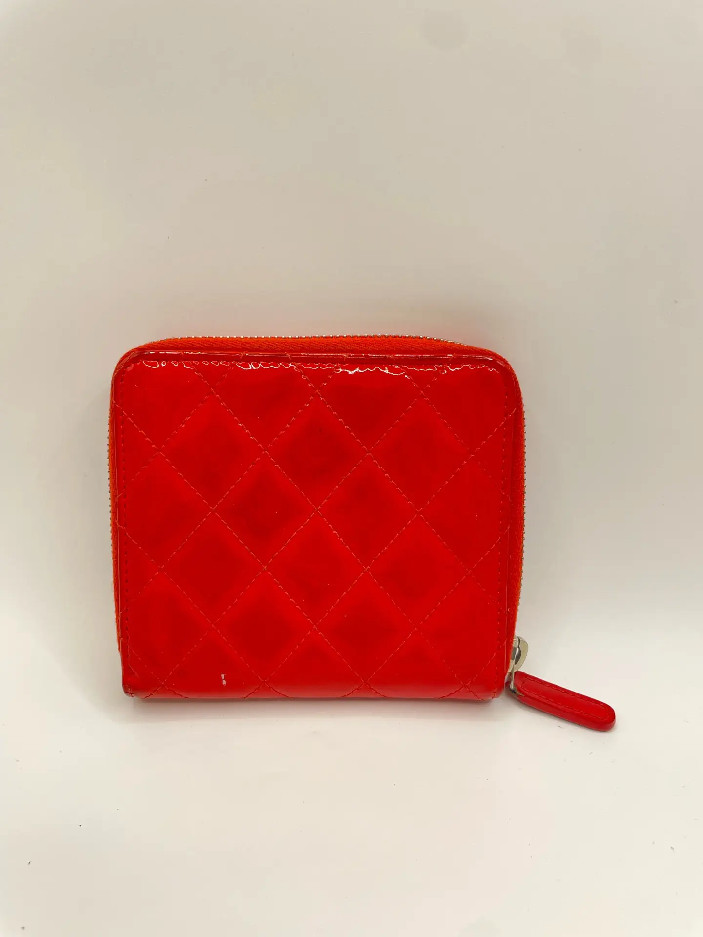 Pre-owned CHANEL 19 Series(2014) Watermelon Red Patent Leather Zipper Wallet Classic Quilted Pattern Silver Hardware size 12x1