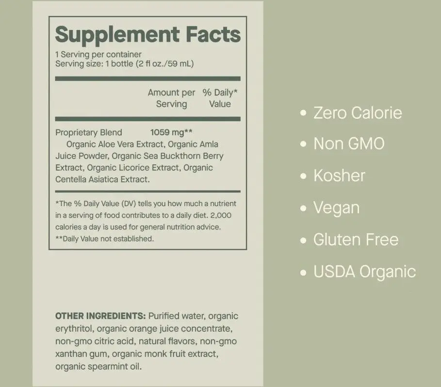 Support your daily skincare routine from the inside out with Dose For Your Skin Organic Shots. This convenient 2oz wellness shot is crafted with a blend of plant-based, skin-supporting ingredients designed to fit easily into your everyday lifestyle.