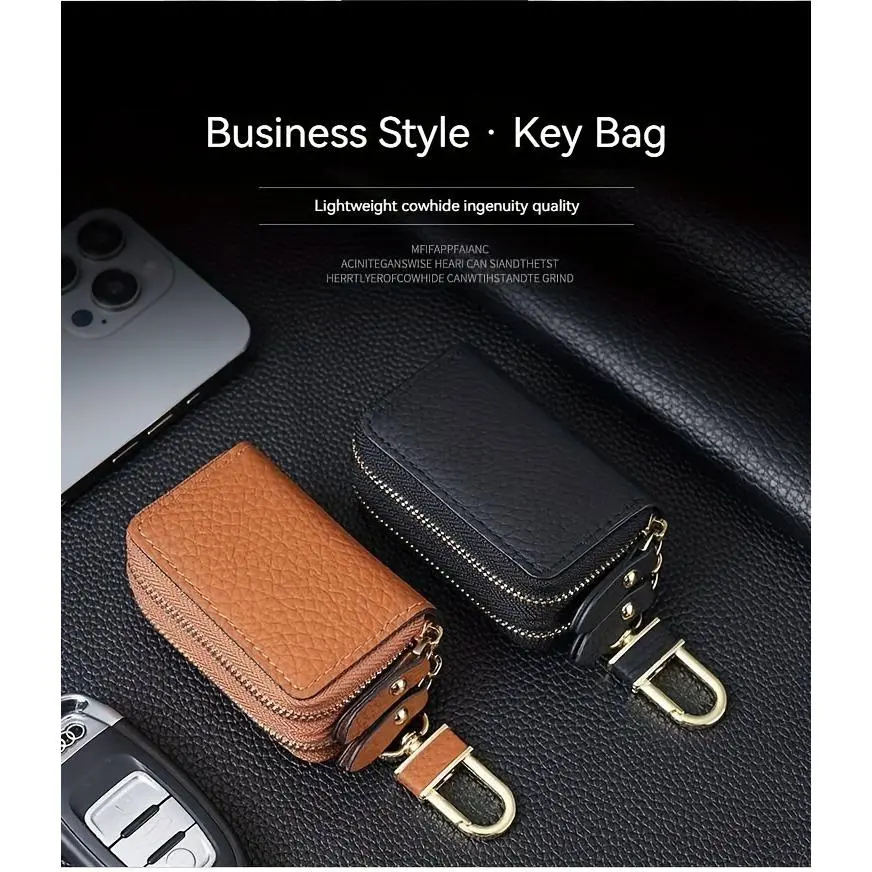 Genuine Leather Lychee Pattern Key Pouch, Top Layer Cowhide Double-Layer Key Case for Men & Women, Perfect Gift for All Occasions